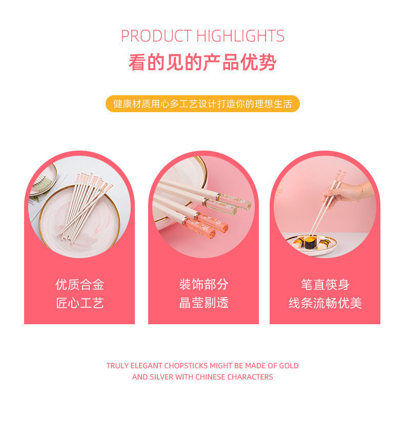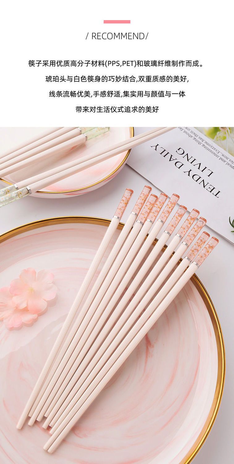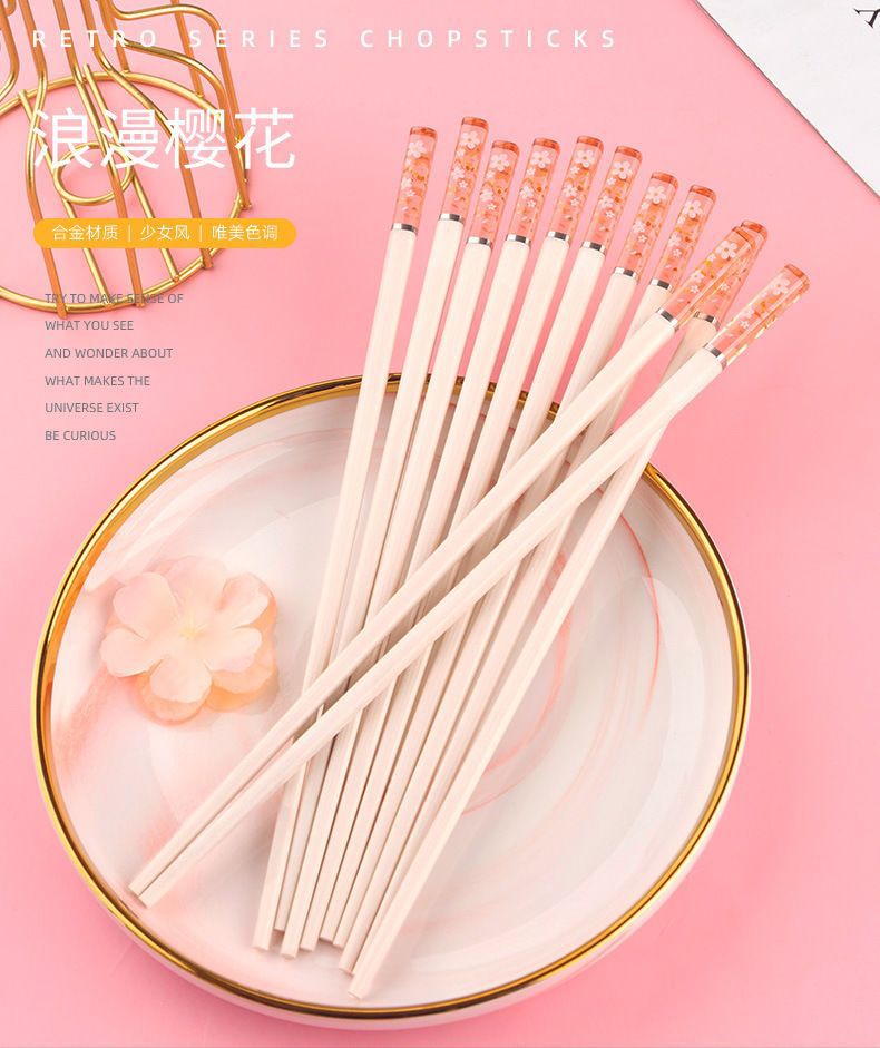 [합금 젓가락] 창조적 인 앰버 벚꽃 일본식 젓가락 홈 스타일 곰팡이 방지 미끄럼 방지 지하 타이스토어 가기