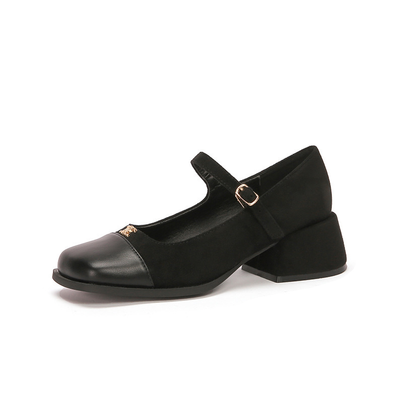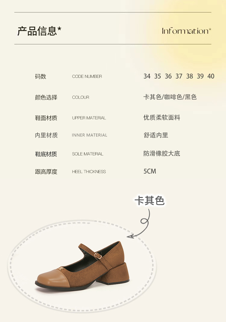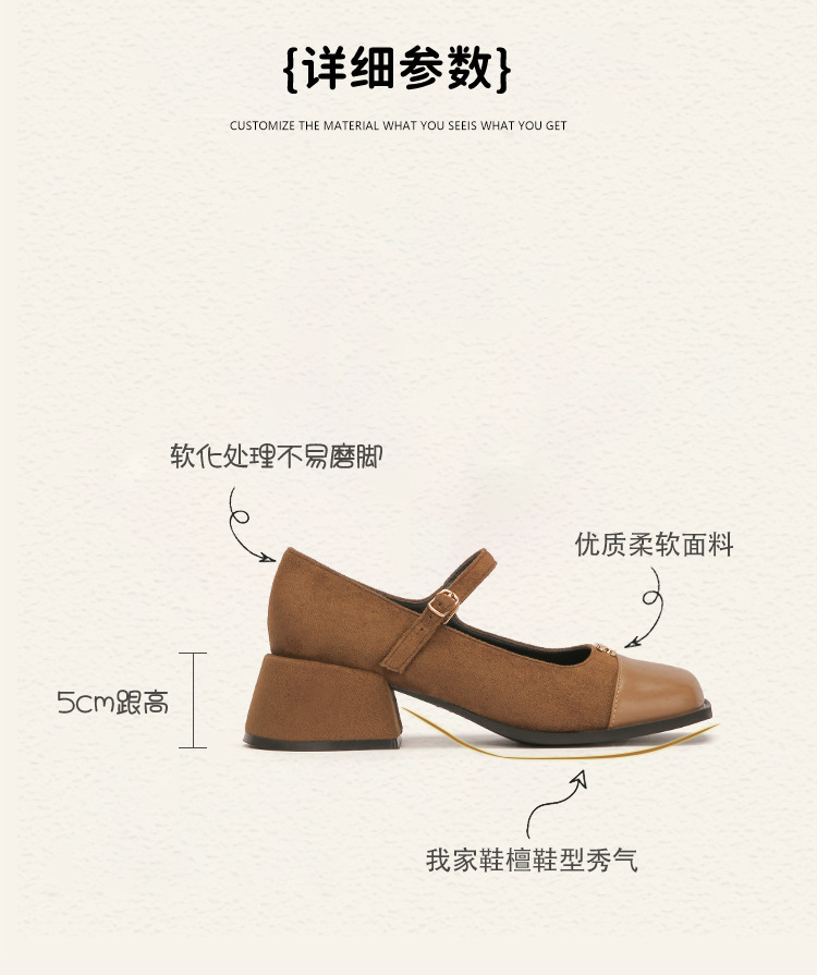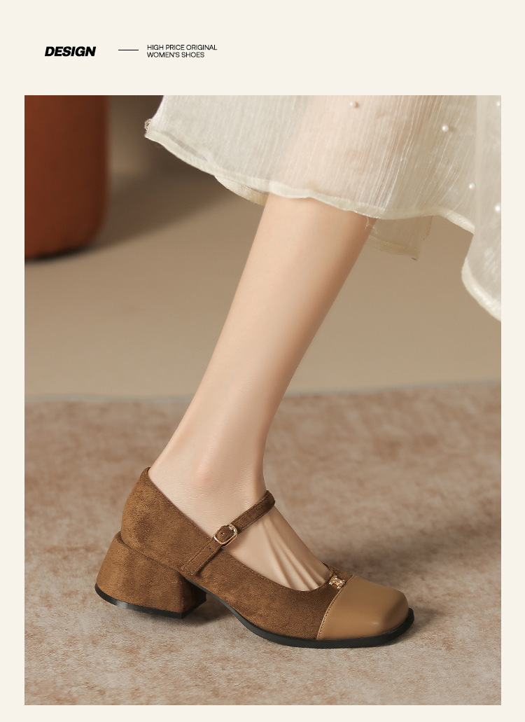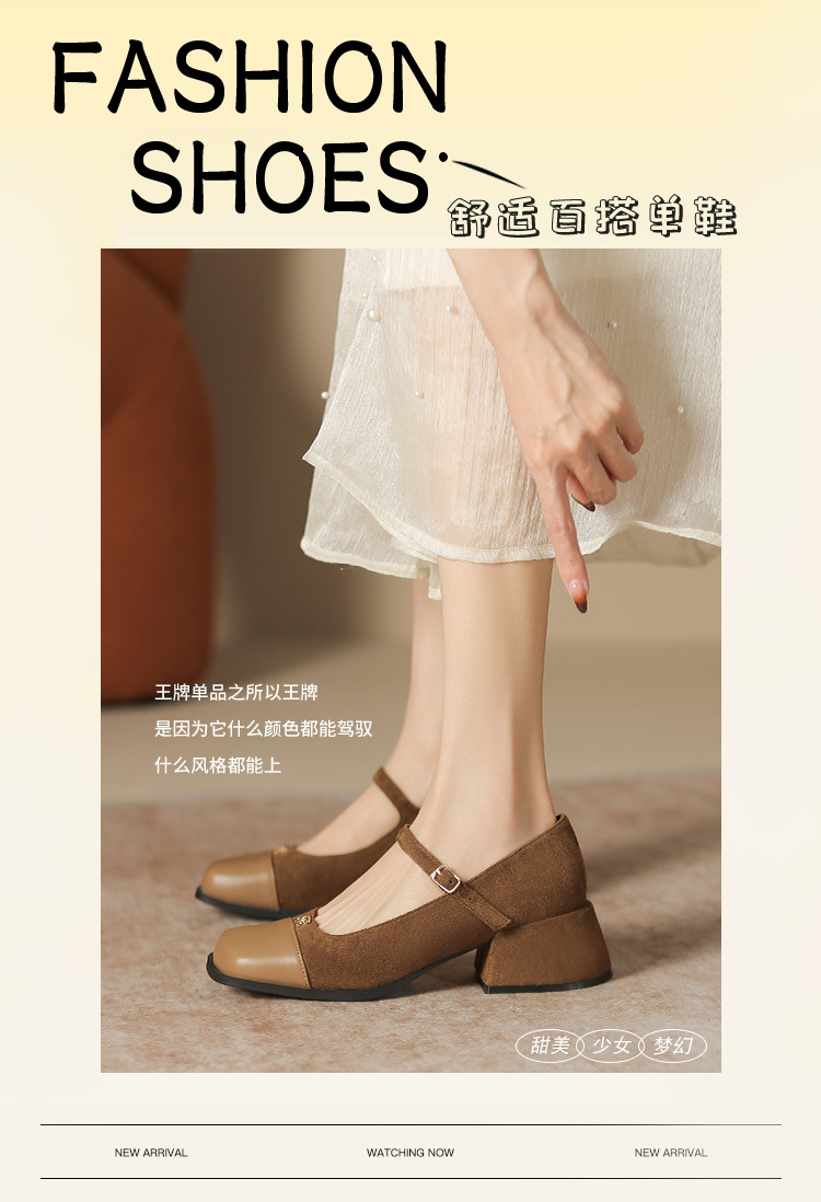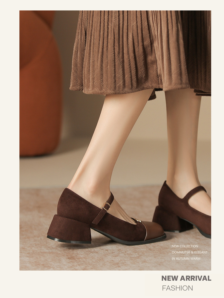 봄과 가을 하이힐 신발 두꺼운 힐 스웨이드 스커트 5 신발 얕은 입 소녀 바느질 메리 제인 신발 여성 프랑스 스타일 매칭 센티미터스토어 가기