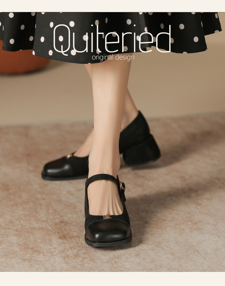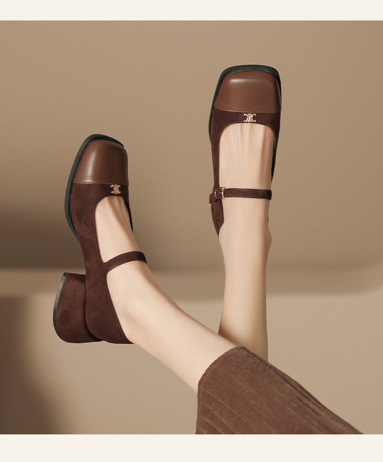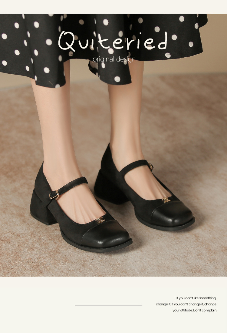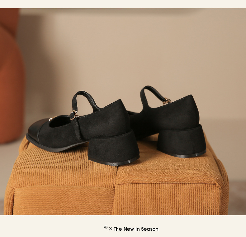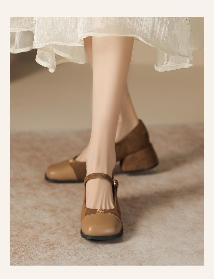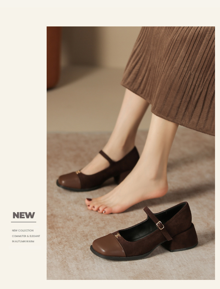 봄과 가을 하이힐 신발 두꺼운 힐 스웨이드 스커트 5 신발 얕은 입 소녀 바느질 메리 제인 신발 여성 프랑스 스타일 매칭 센티미터스토어 가기