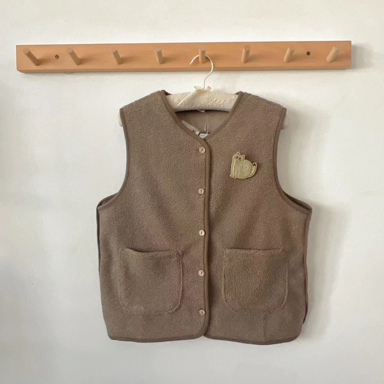 일본 Kusuguru 새 고양이 브로치 캐시미어 과립 여성 조끼 따뜻한 캐주얼 조끼 다목적 216스토어 가기