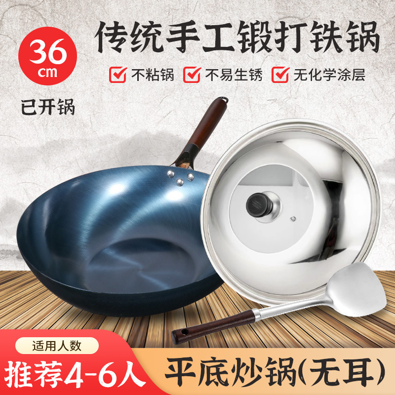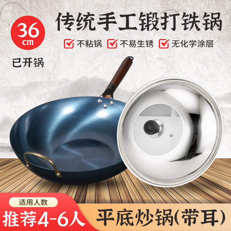 • 36cm 평평한 바닥 웍(귀 포함)이 열려 있습니다 + 고급 뚜껑 + 삽