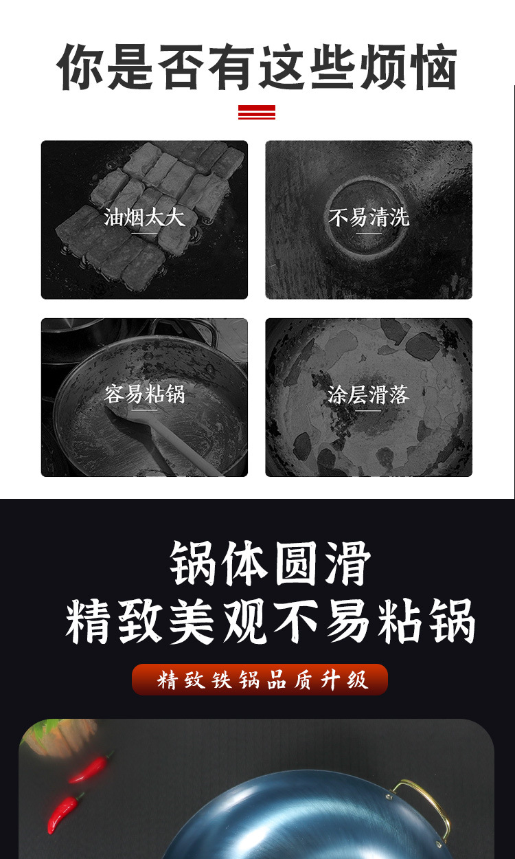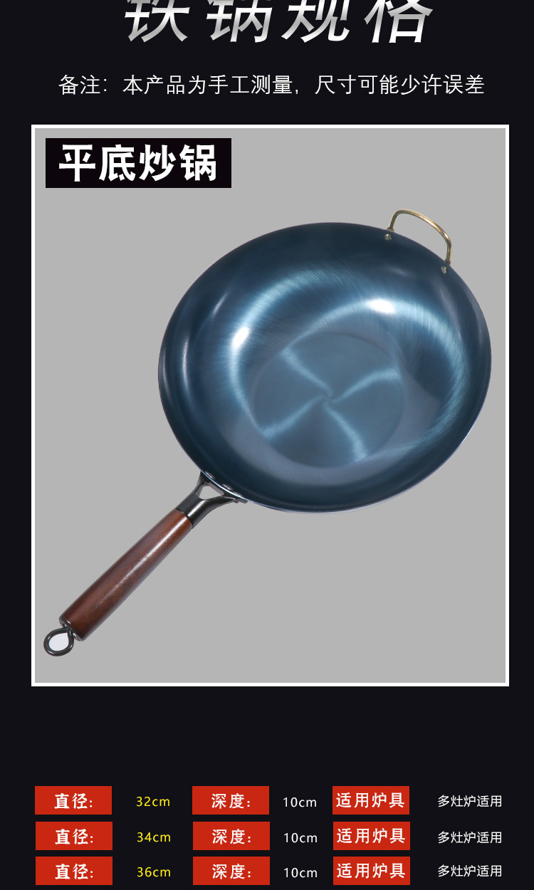• 34cm 평평한 바닥 웍(귀 없음)이 준비되었습니다.