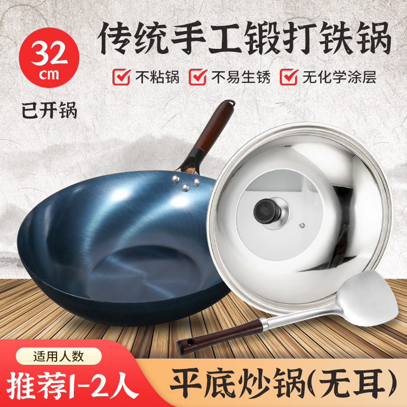 • 32cm 평평한 바닥 웍(귀 포함)이 열려 있습니다 + 고급 뚜껑 + 삽