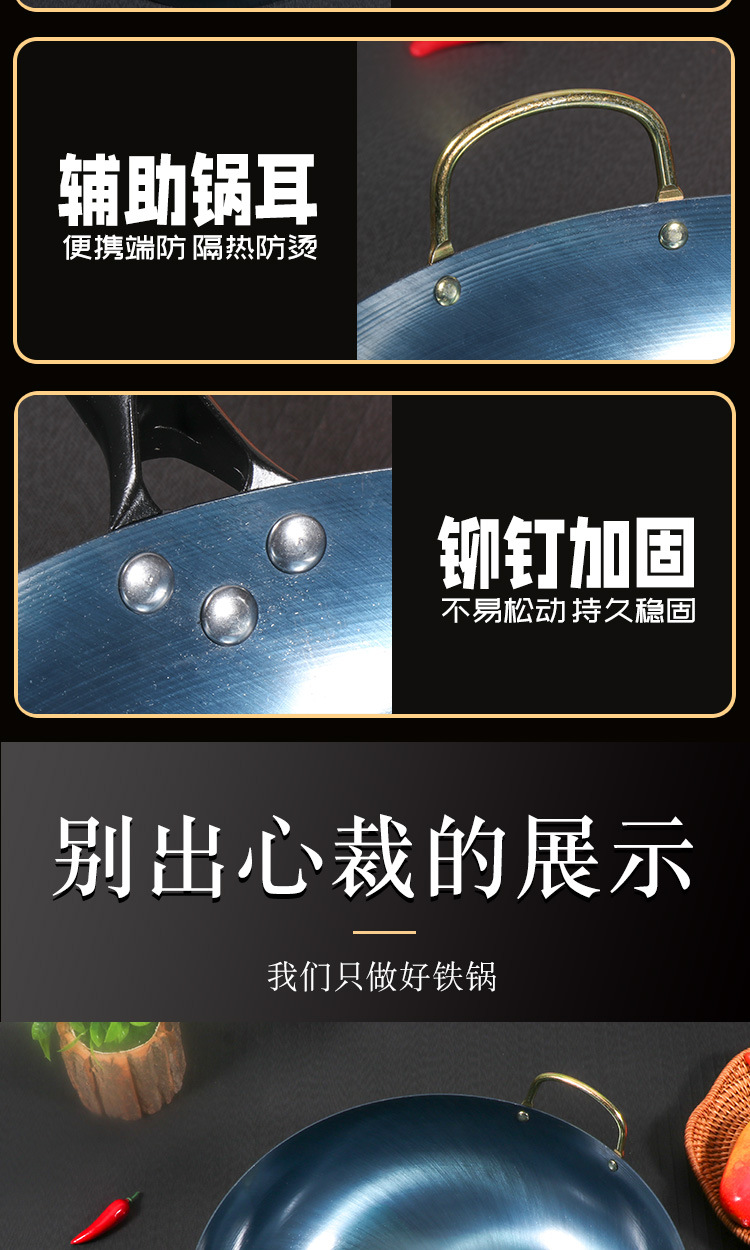 • 34cm 평평한 바닥 웍(귀 없음)이 열린 냄비 + 고급 뚜껑 + 삽