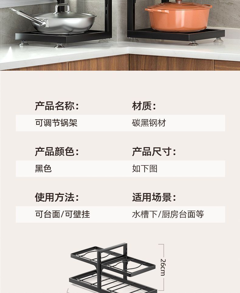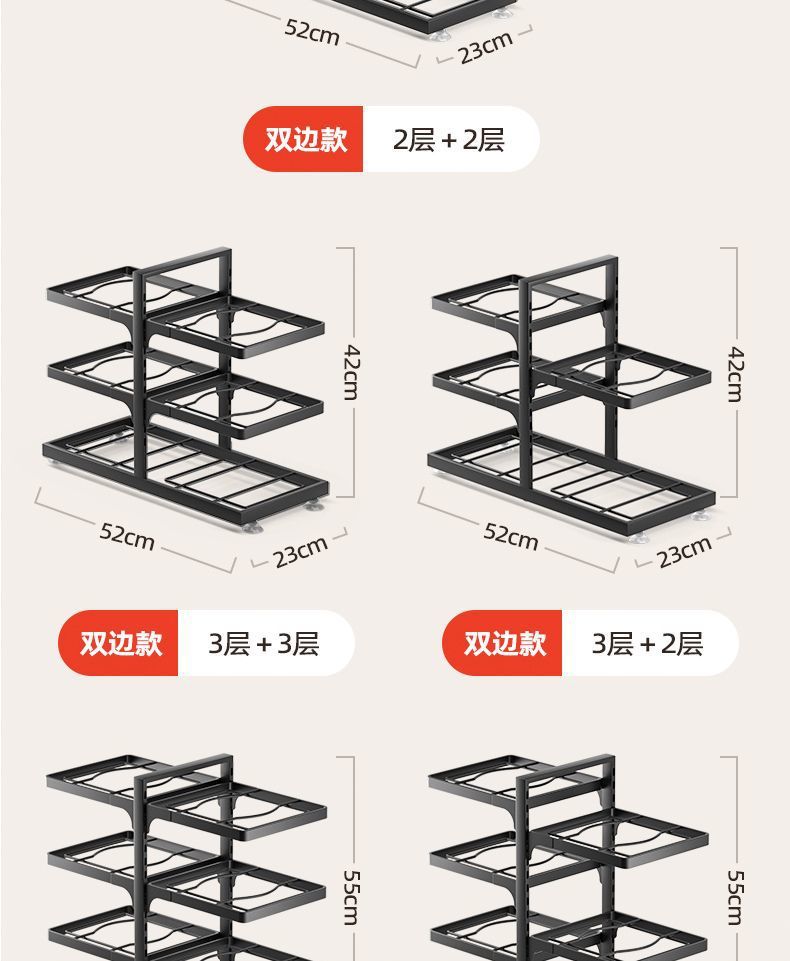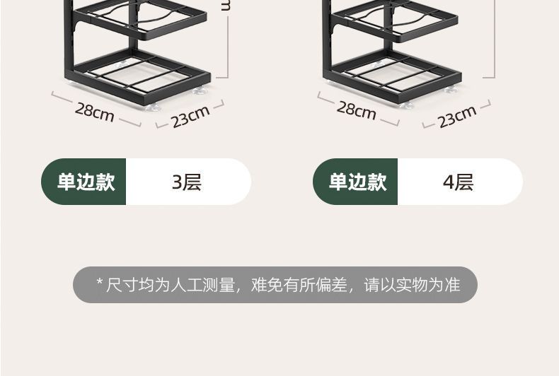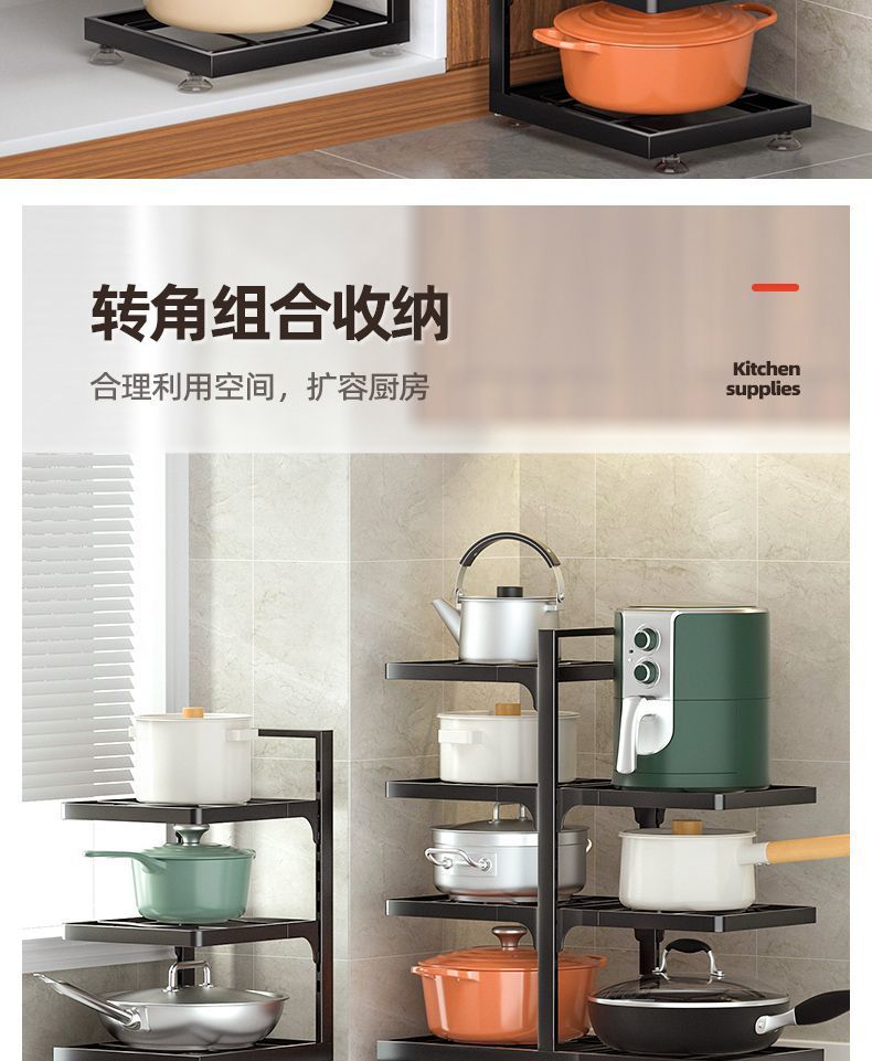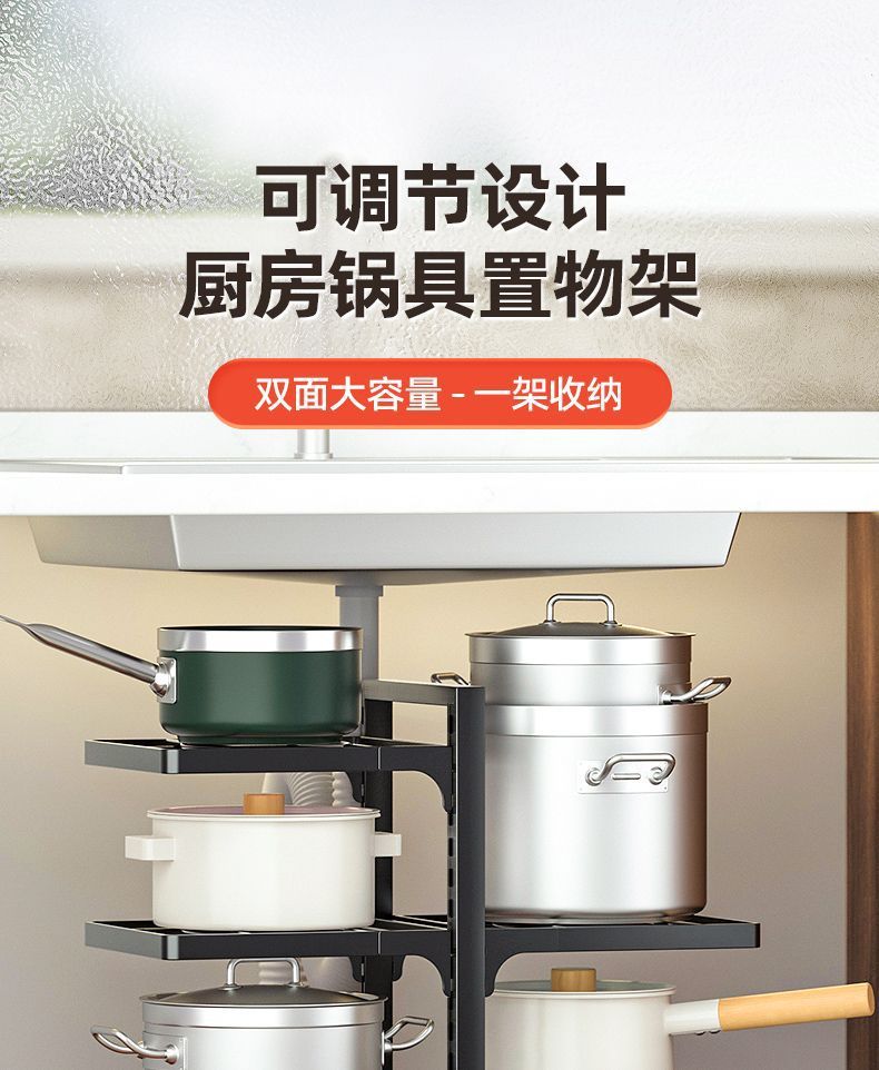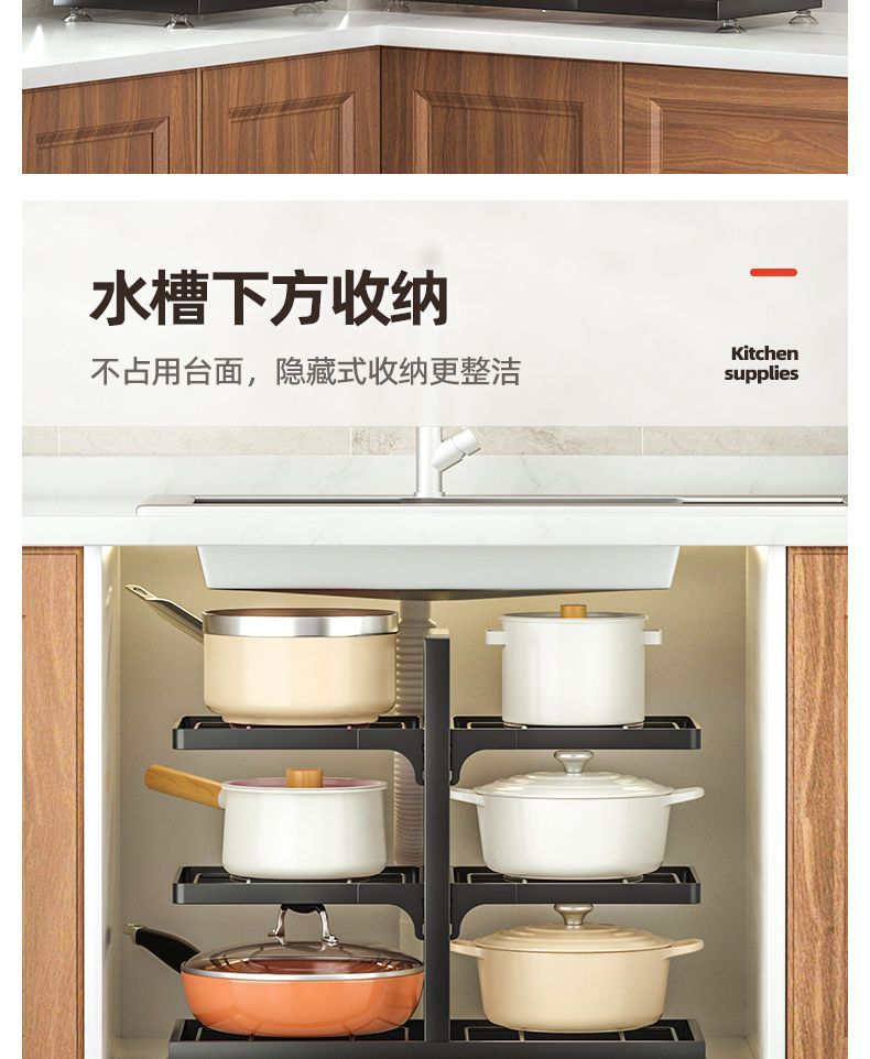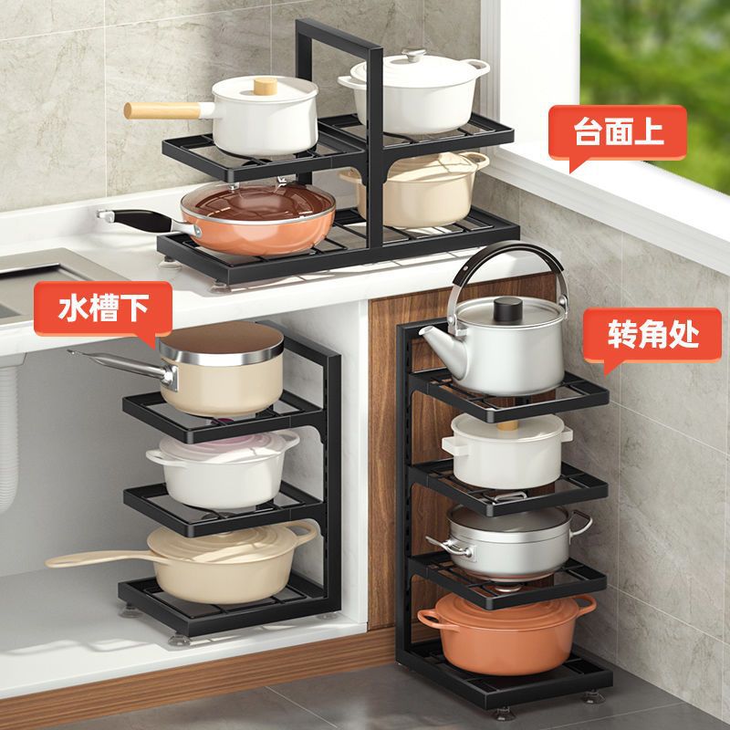 양면 사이드 포트 랙 스토리지 랙 새로운 주방 스토리지 랙 낮은 싱크 캐비닛 다층 조정 가능한 코너 랙 카운터 탑 Jiatai스토어 가기