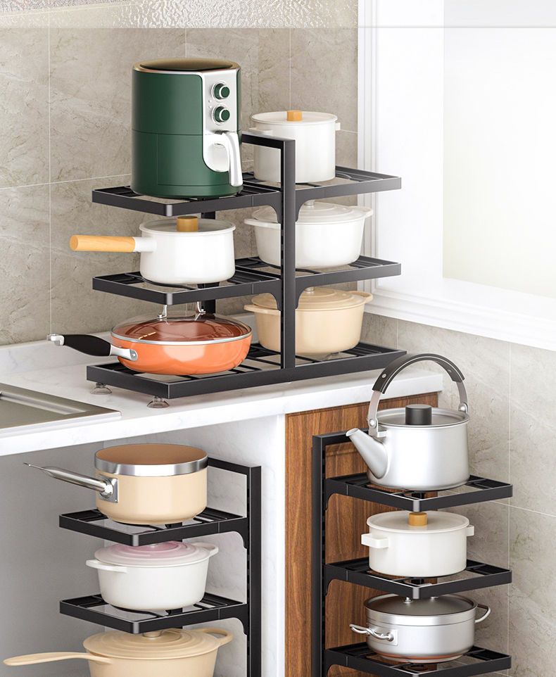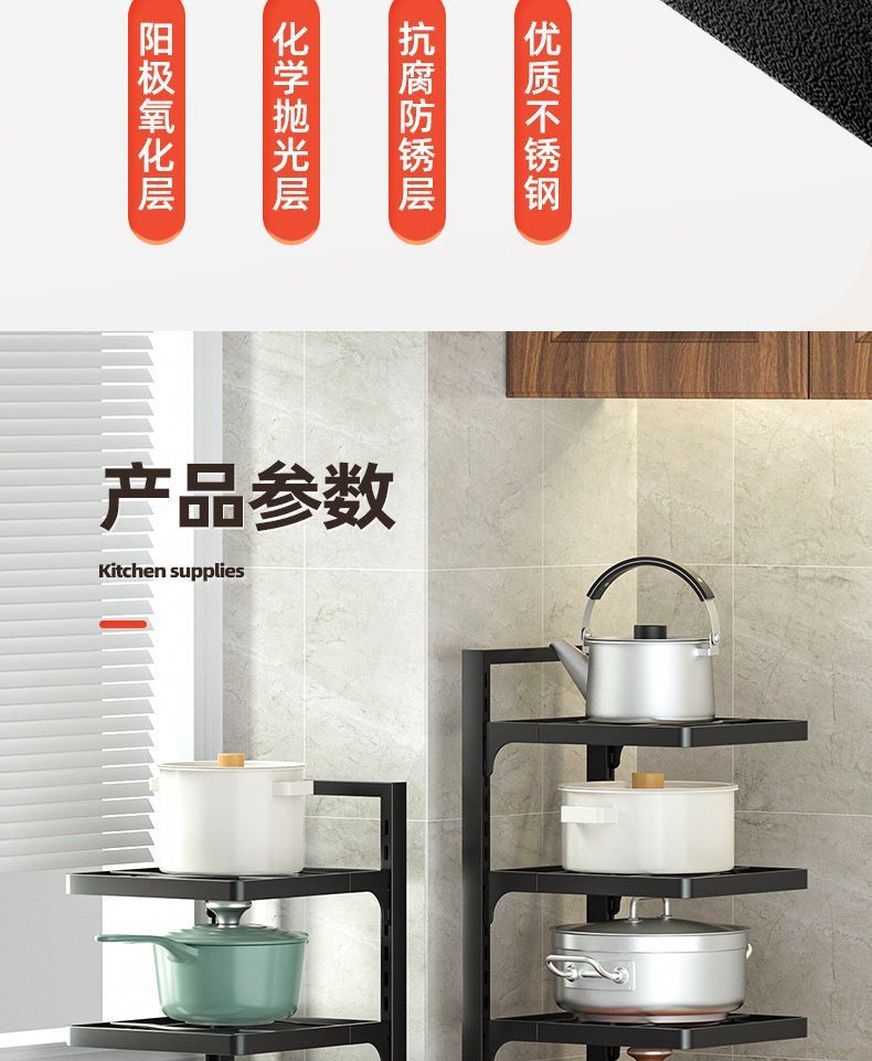양면 사이드 포트 랙 스토리지 랙 새로운 주방 스토리지 랙 낮은 싱크 캐비닛 다층 조정 가능한 코너 랙 카운터 탑 Jiatai