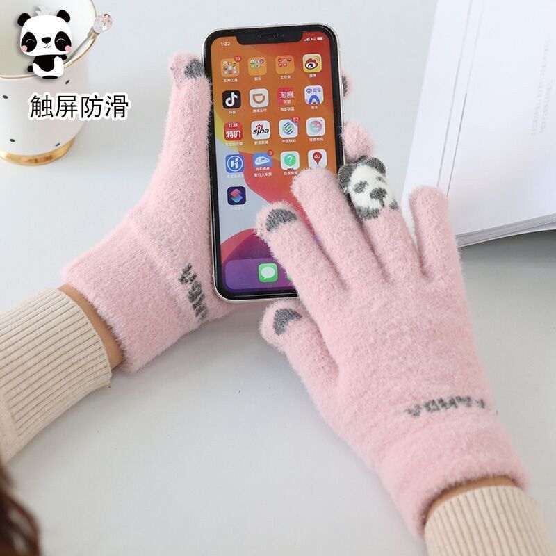 장갑 겨울 유니버설 귀여운 기모 따뜻한 냉간 터치 스크린 손가락 손가락 손가락 자전거 소녀 다섯 손가락 사이클링 장갑