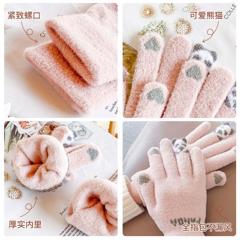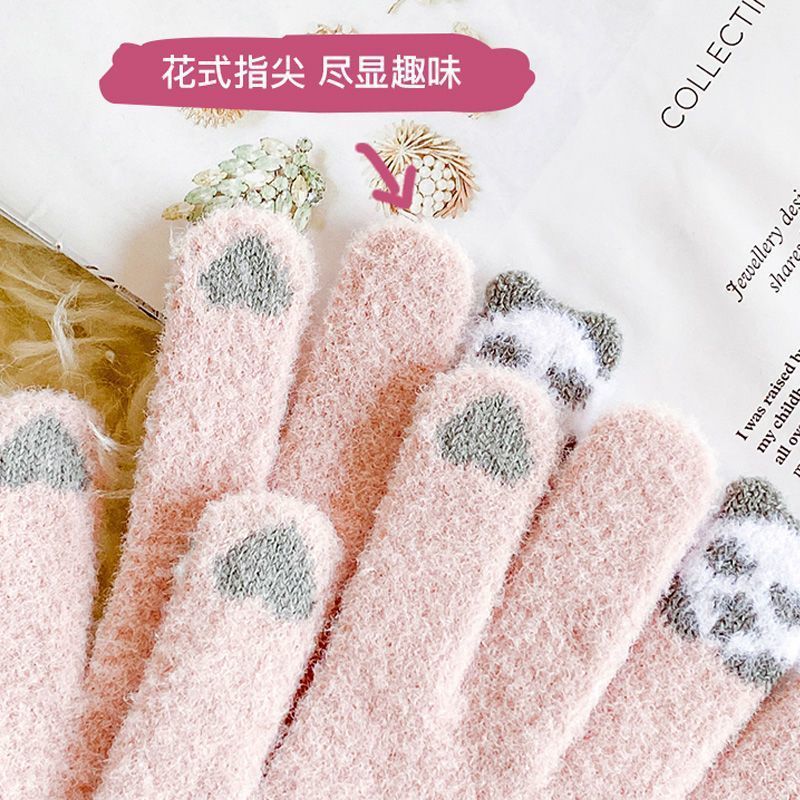 장갑 겨울 유니버설 귀여운 기모 따뜻한 냉간 터치 스크린 손가락 손가락 손가락 자전거 소녀 다섯 손가락 사이클링 장갑스토어 가기