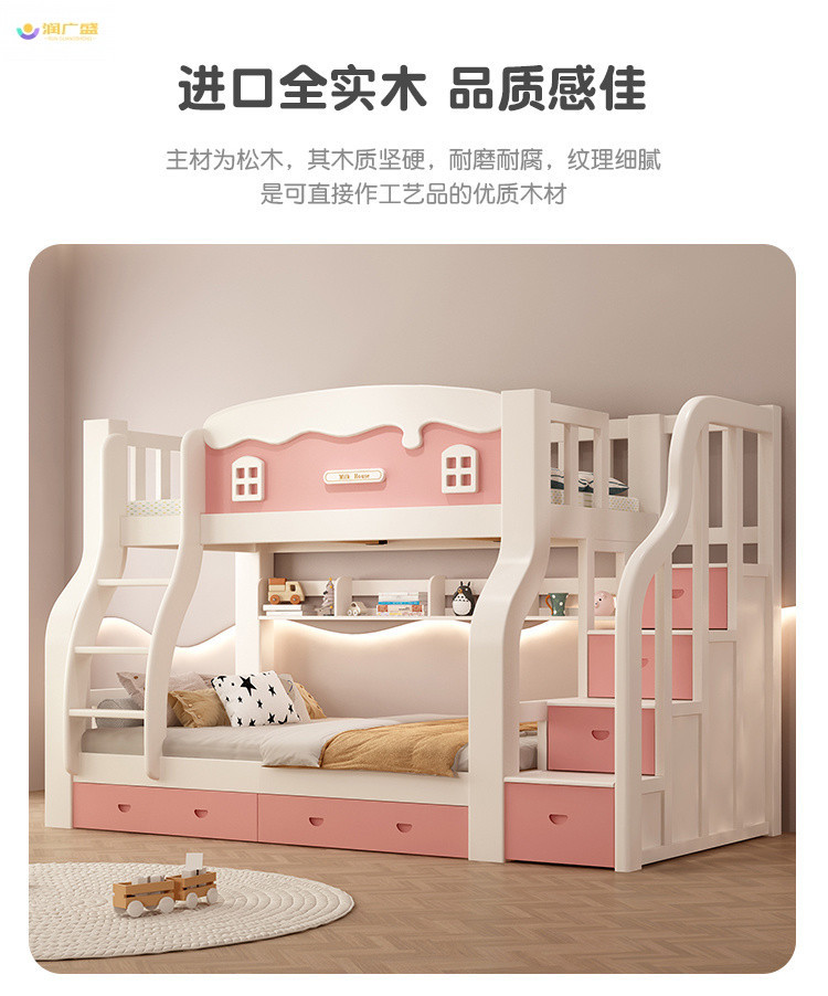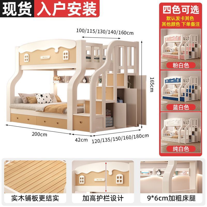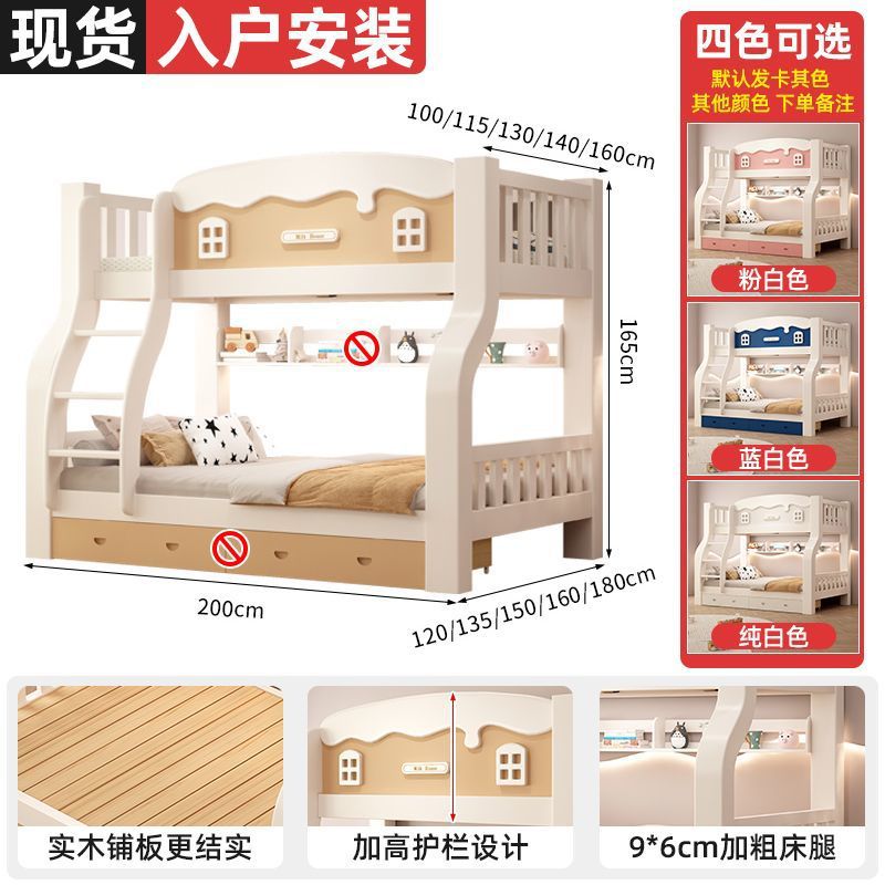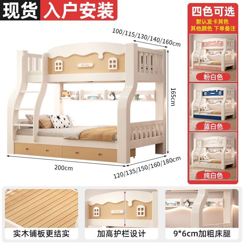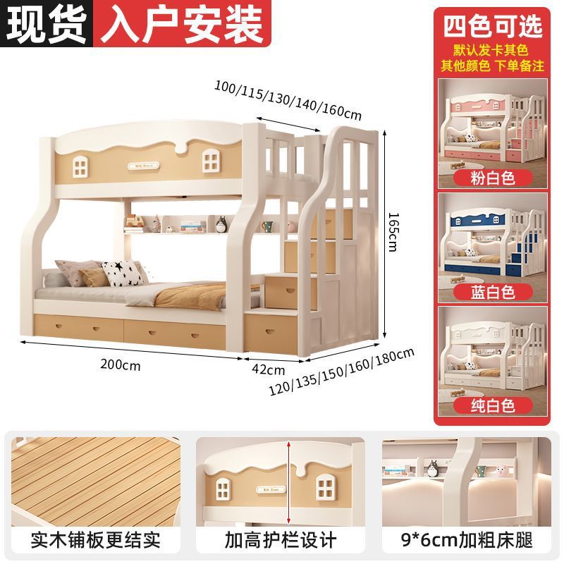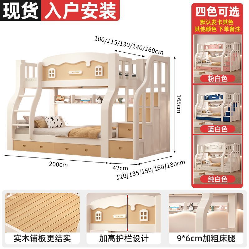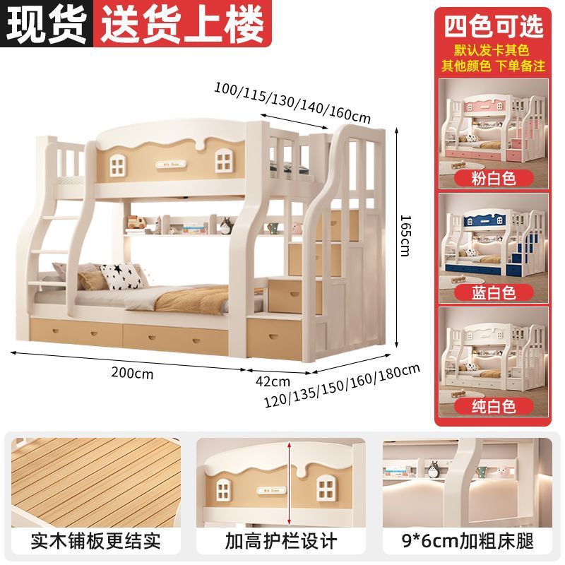 전체 단단한 나무 벙크 침대 이층 침대 높고 낮은 침대 다기능 작은 아파트 엄마와 아이 침대 어린이 벙크 나무 침대