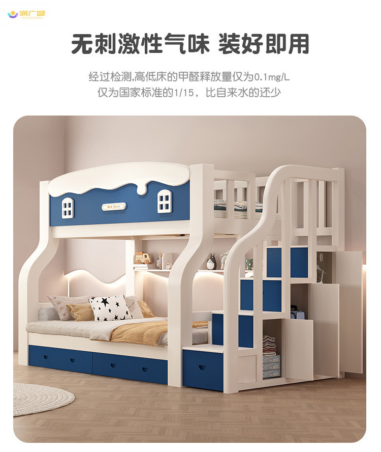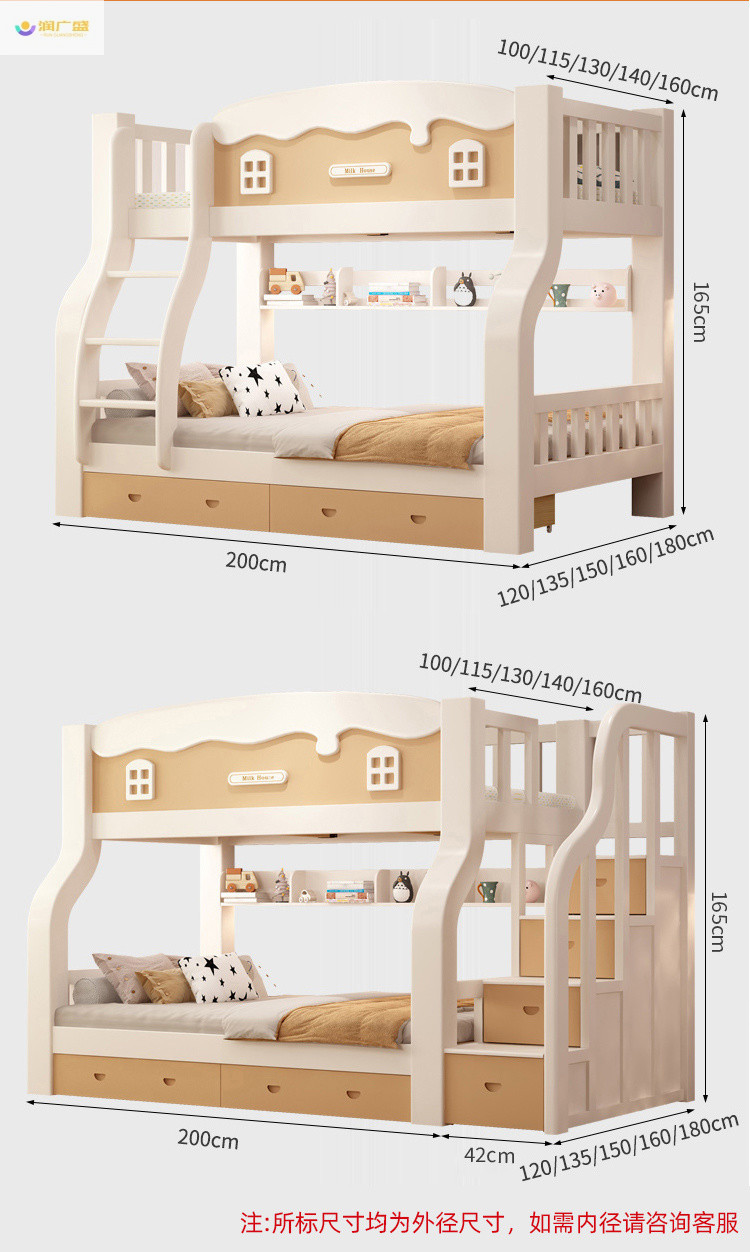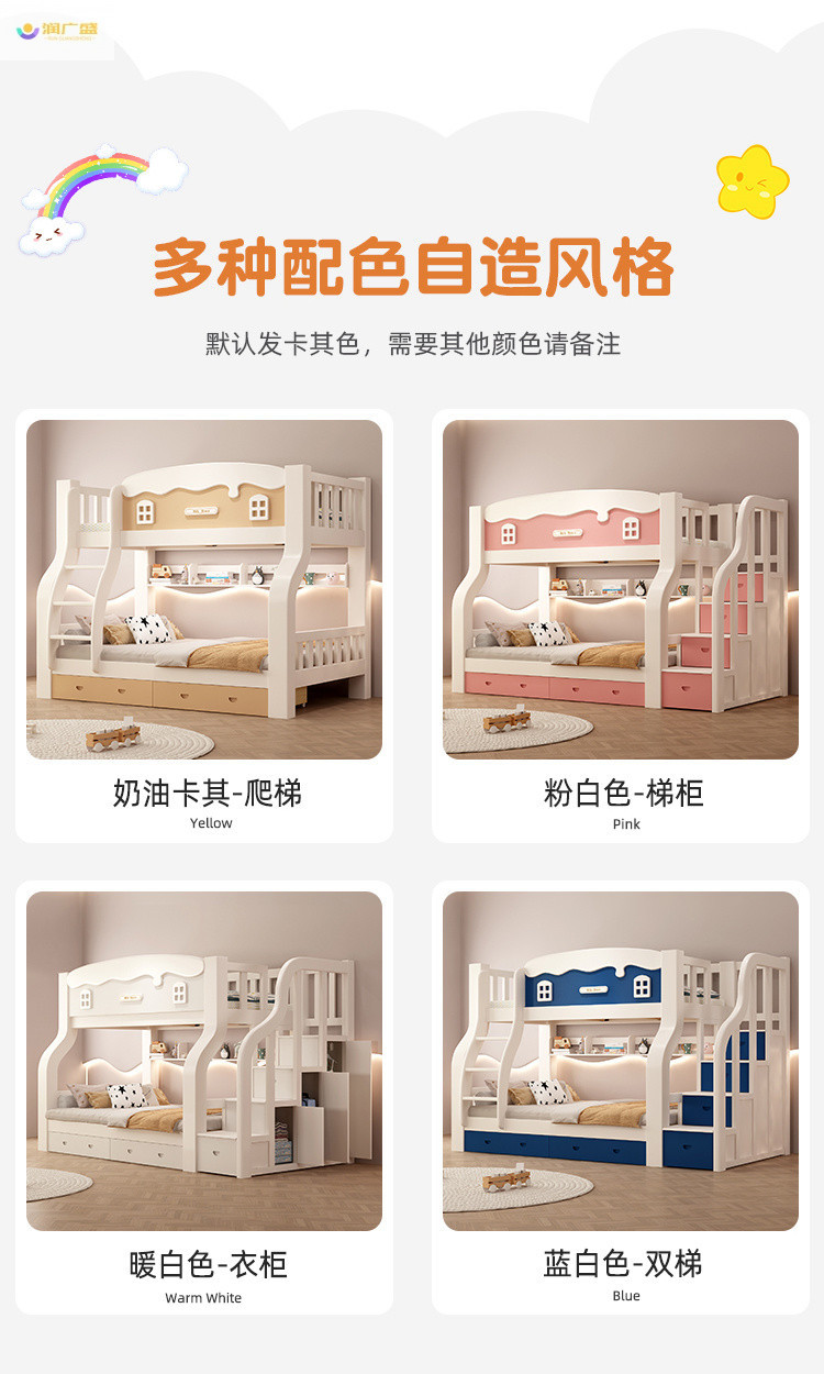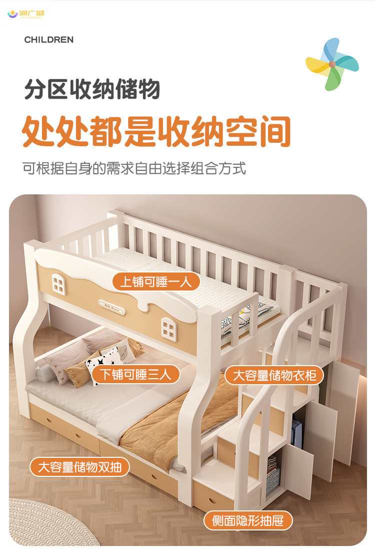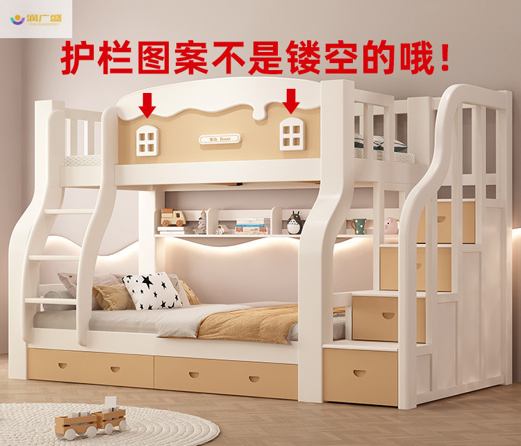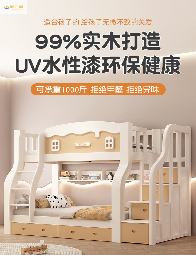 전체 단단한 나무 벙크 침대 이층 침대 높고 낮은 침대 다기능 작은 아파트 엄마와 아이 침대 어린이 벙크 나무 침대