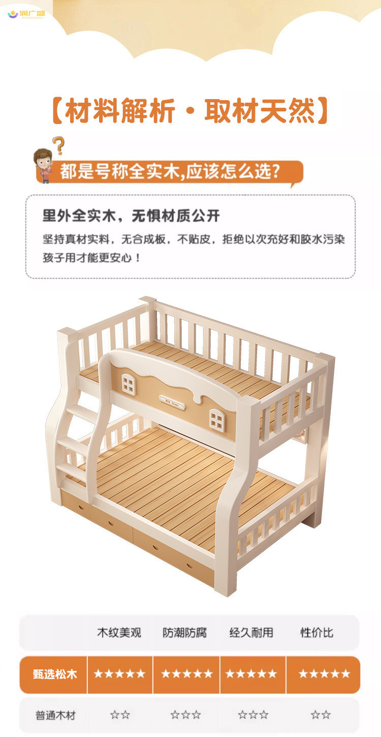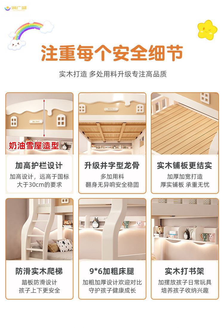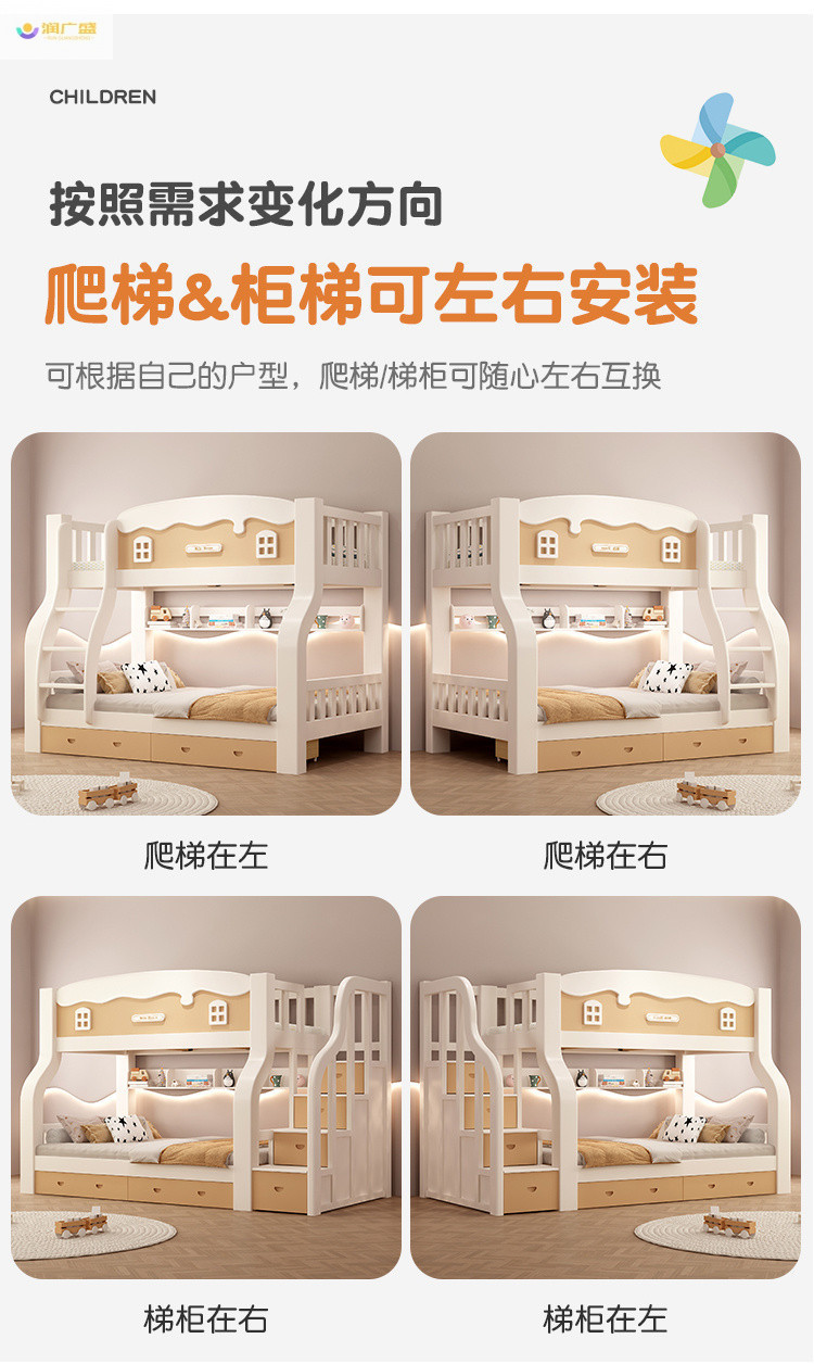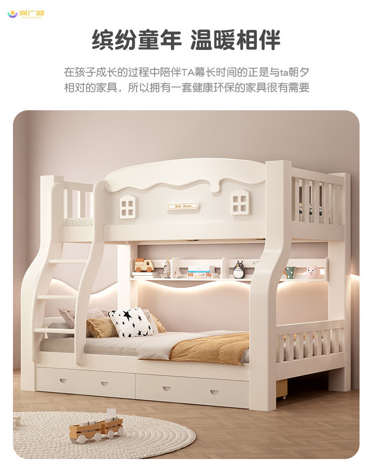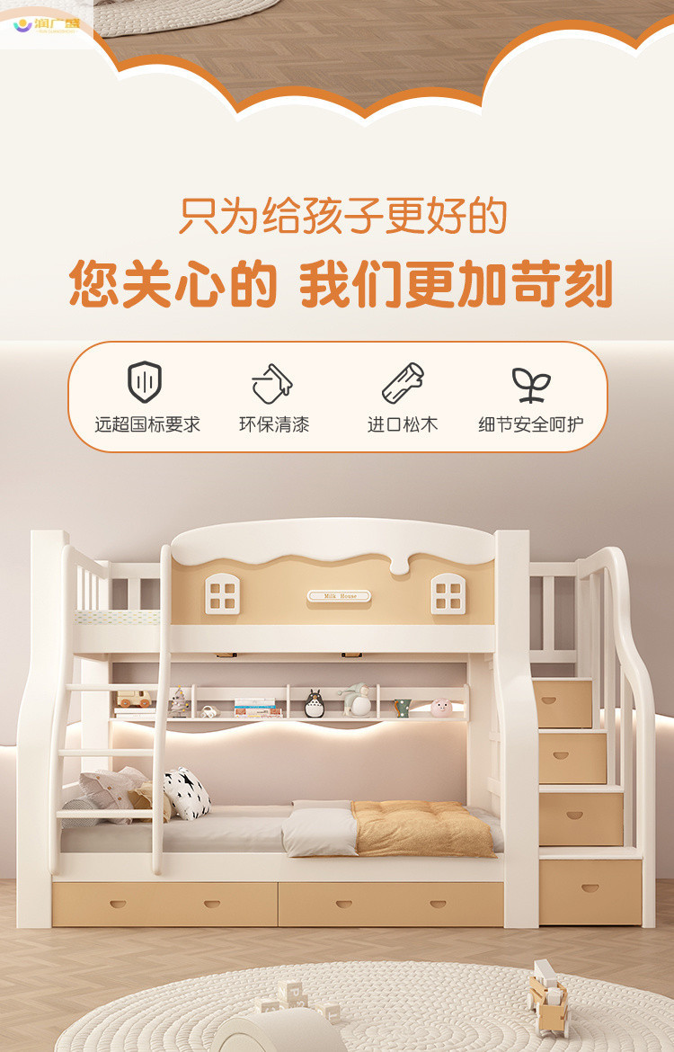 전체 단단한 나무 벙크 침대 이층 침대 높고 낮은 침대 다기능 작은 아파트 엄마와 아이 침대 어린이 벙크 나무 침대