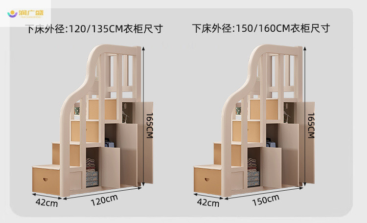 • 사다리 캐비닛 길이 242cm + 책장 + 이중 서랍 + 매트리스 * 2 + 설치