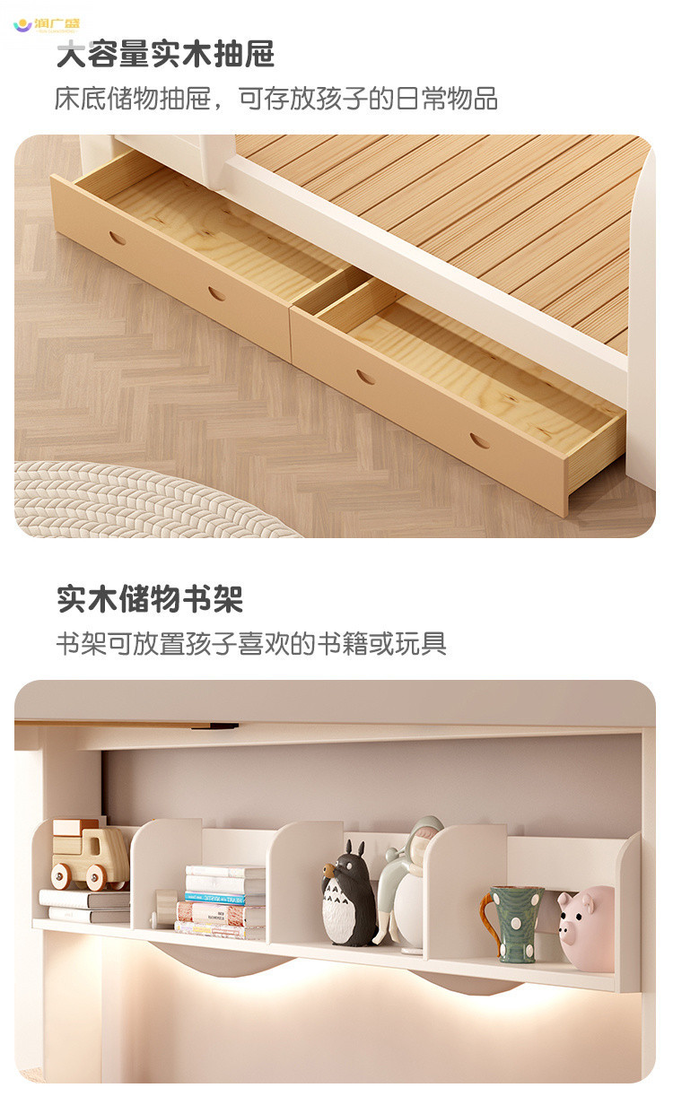 • 이중사다리 길이 242cm + 책장 + 이중서랍 + 매트리스*2 + 위층