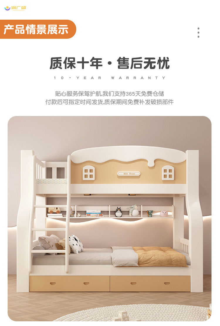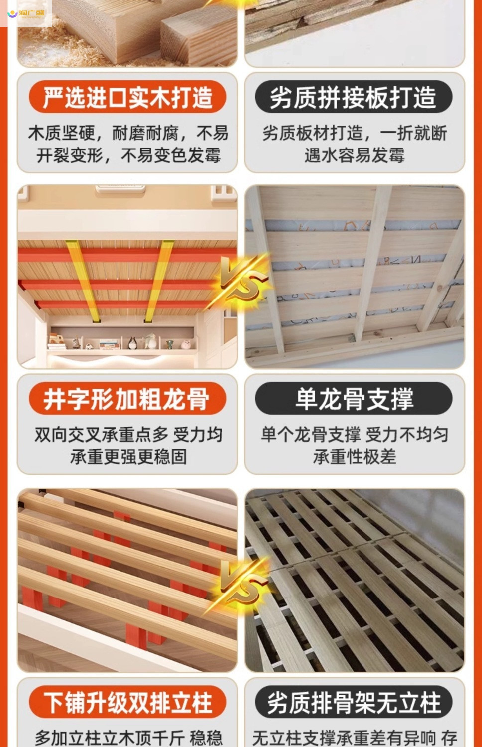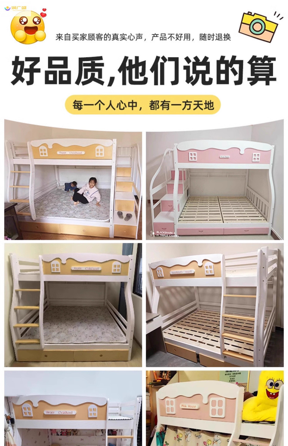 전체 단단한 나무 벙크 침대 이층 침대 높고 낮은 침대 다기능 작은 아파트 엄마와 아이 침대 어린이 벙크 나무 침대스토어 가기