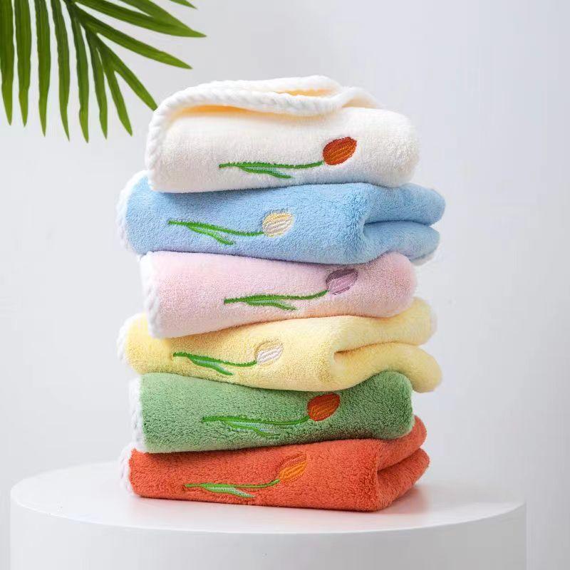 튤립 산호 양털 수건 목욕 타월 세트 수건 아기 어린이 부드러운 흡수성 꽃 시리즈