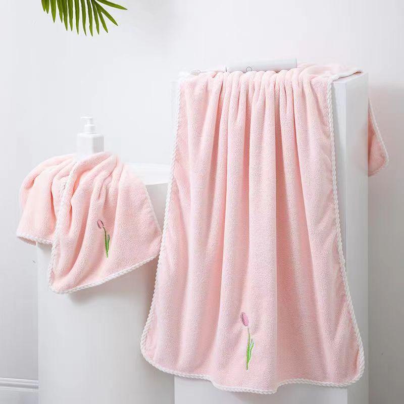 튤립 산호 양털 수건 목욕 타월 세트 수건 아기 어린이 부드러운 흡수성 꽃 시리즈스토어 가기