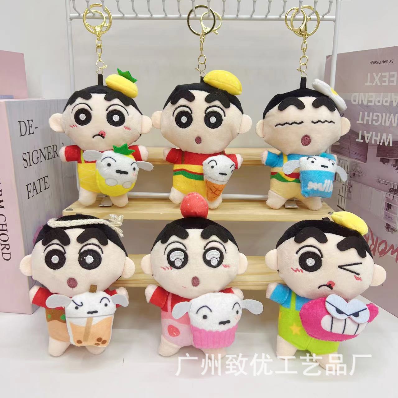 일본 귀여운 만화 봉제 장난감 4 인치 크레용 작은 새로운 키 체인 펜던트 부티크 인형 기계 제조 업체 도매