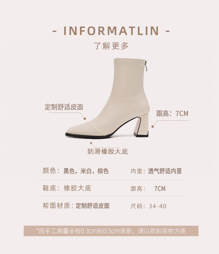 2024 가을과 겨울 새로운 스퀘어 헤드 마틴 부츠 여성 하이힐 짧은 부츠 두꺼운 힐 스트레치 부츠 다크 브라운 여성 부츠 도매스토어 가기