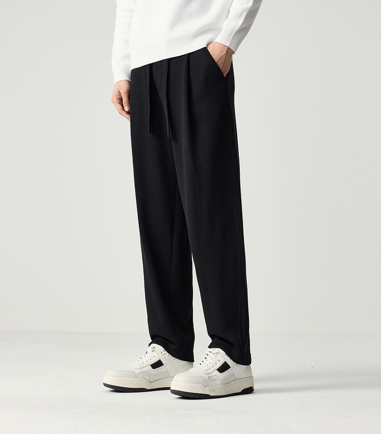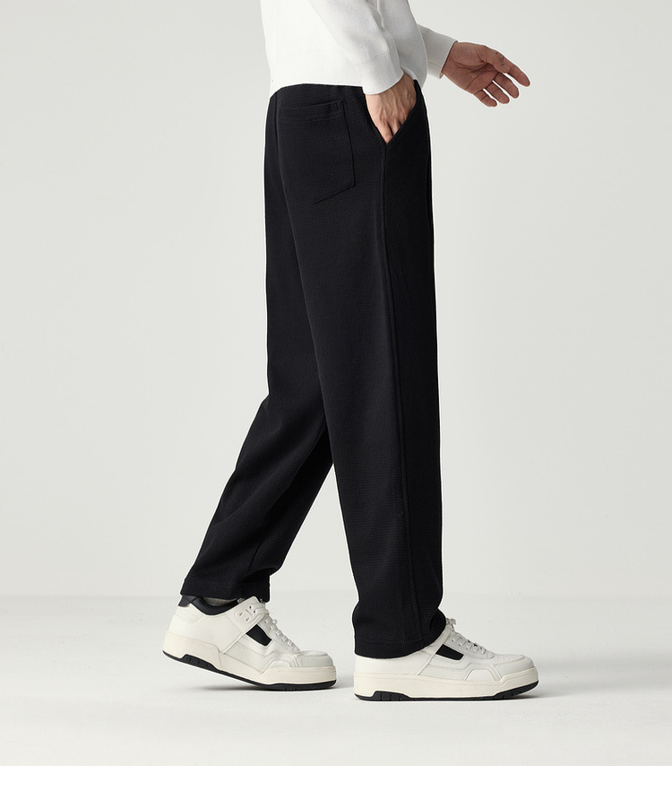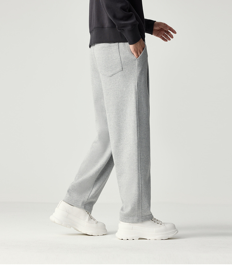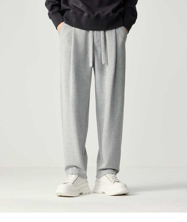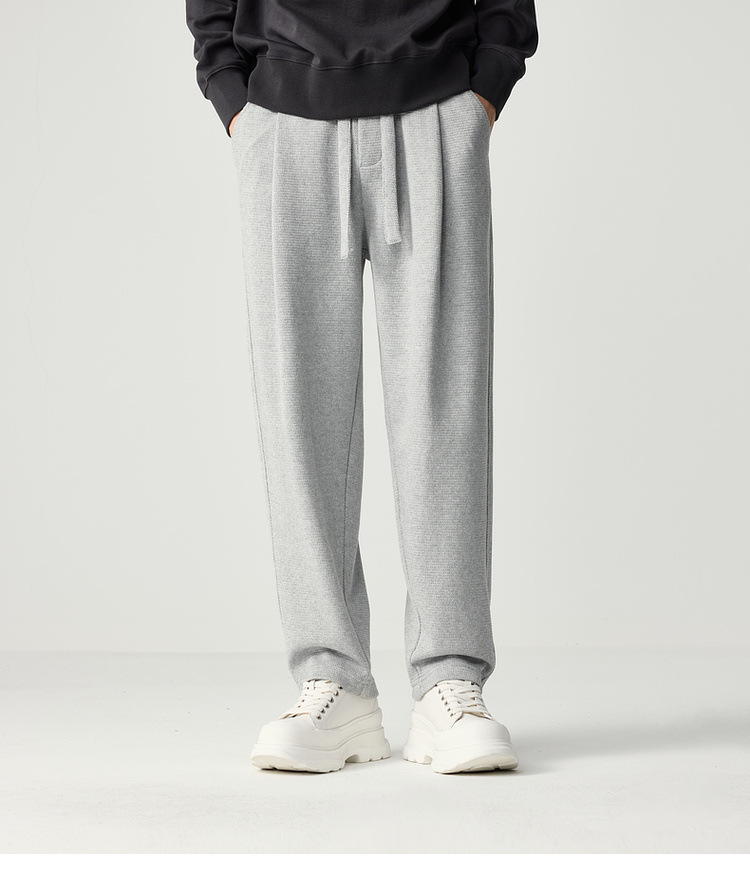 Moxmoke 남성용 신축성 있는 허리 루즈 스트레이트 캐주얼 바지 남성용 2025 봄 신작 남성용 니트 바지 90707스토어 가기
