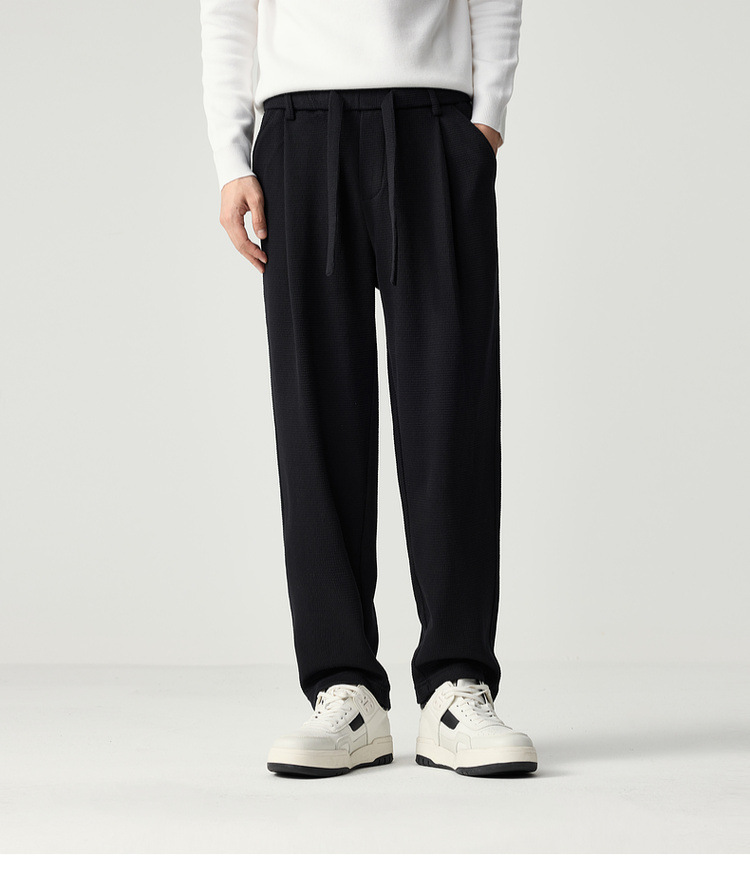 Moxmoke 남성용 신축성 있는 허리 루즈 스트레이트 캐주얼 바지 남성용 2025 봄 신작 남성용 니트 바지 90707