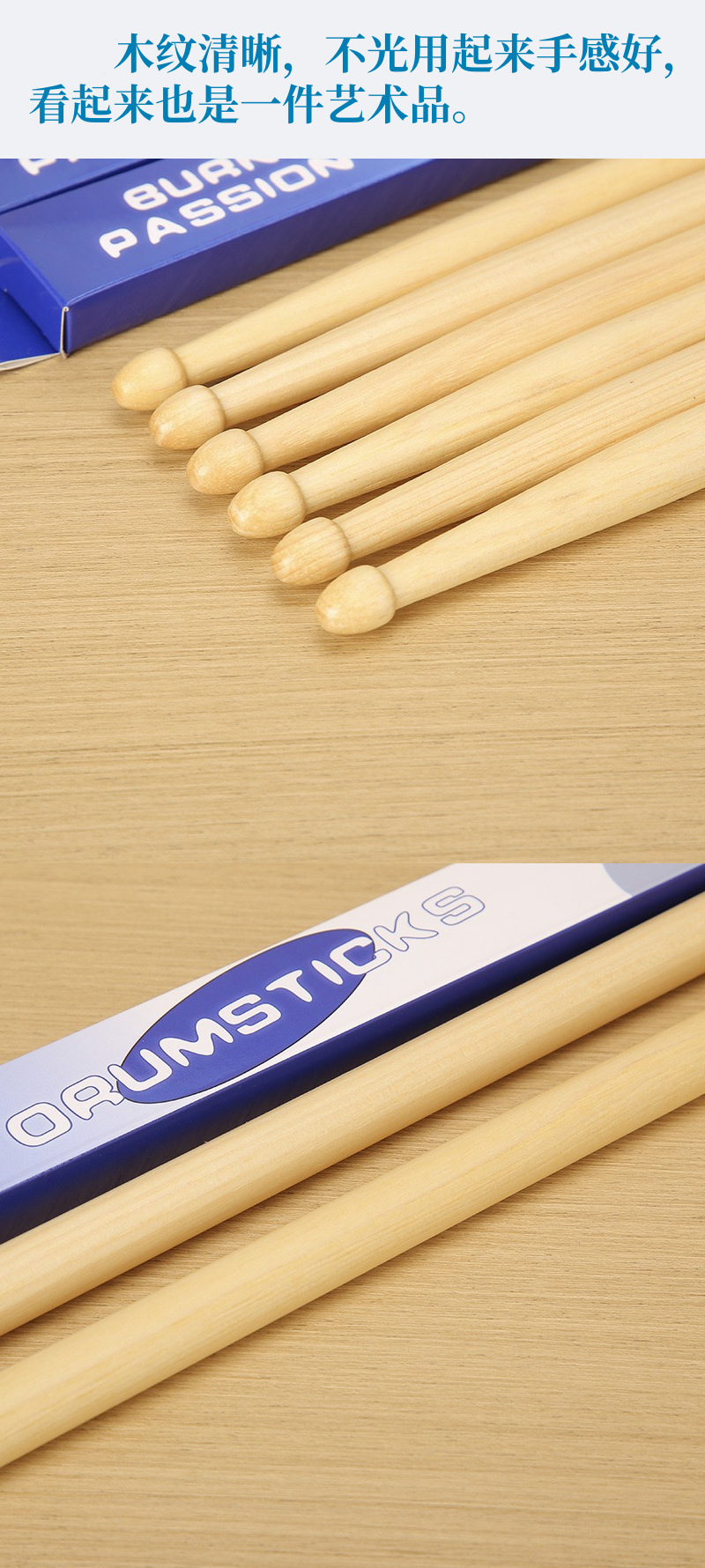 공장 도매 북미 히코리 5A 프레임 드럼 스틱 드럼 스틱 전문 등급 프레임 드럼 우드 드럼 스틱 재즈 드럼 스틱
