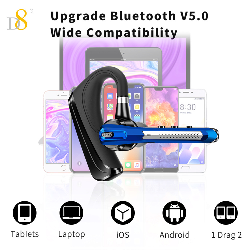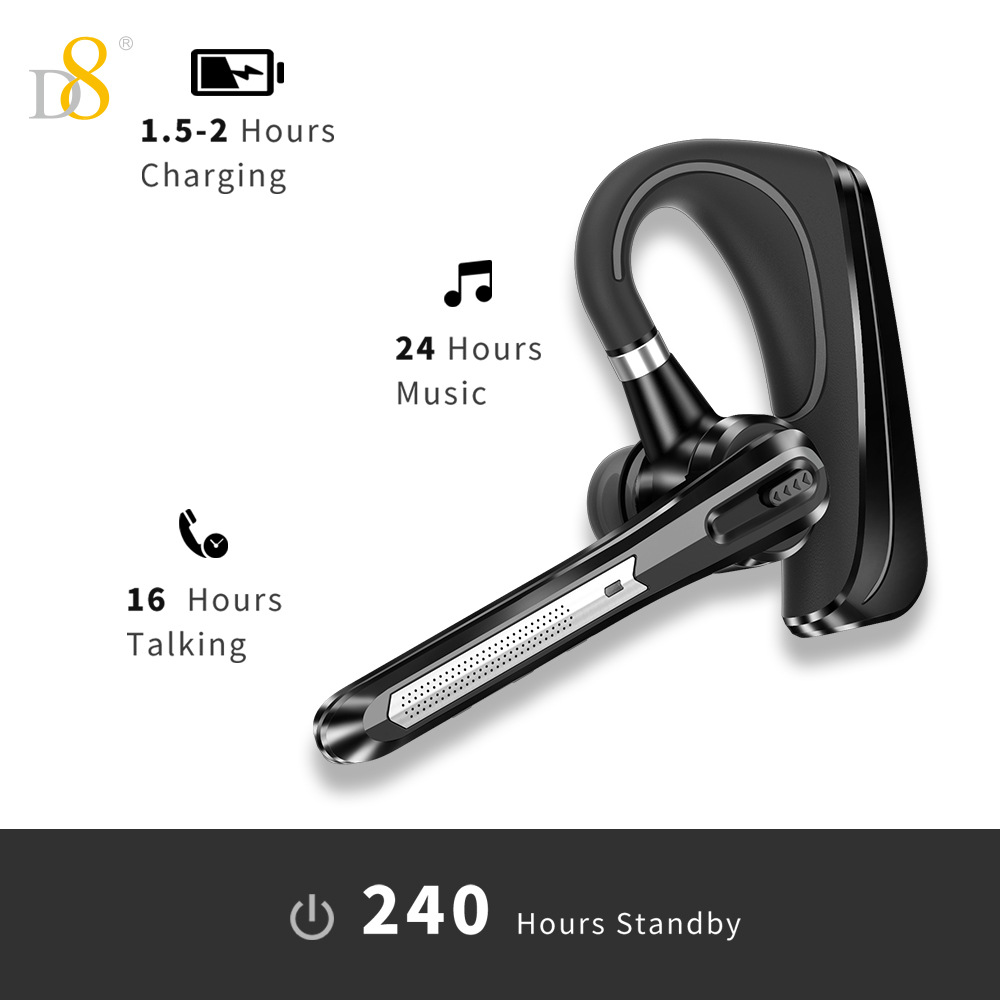 D8 단일 귀 블루투스 비즈니스 헤드셋 무선 이어폰 대용량 24시간 매우 긴 배터리 수명 대외 무역 선물