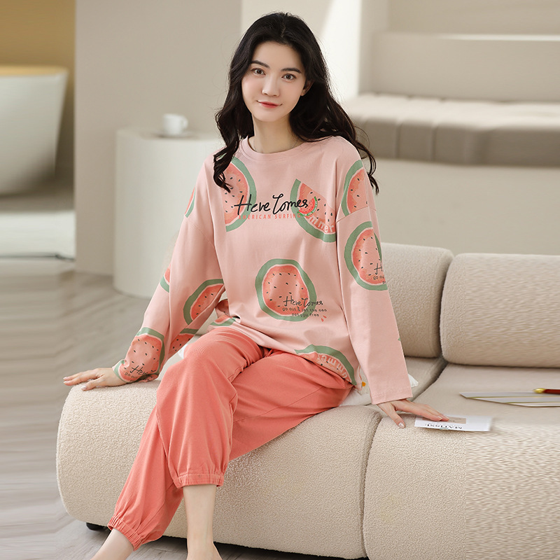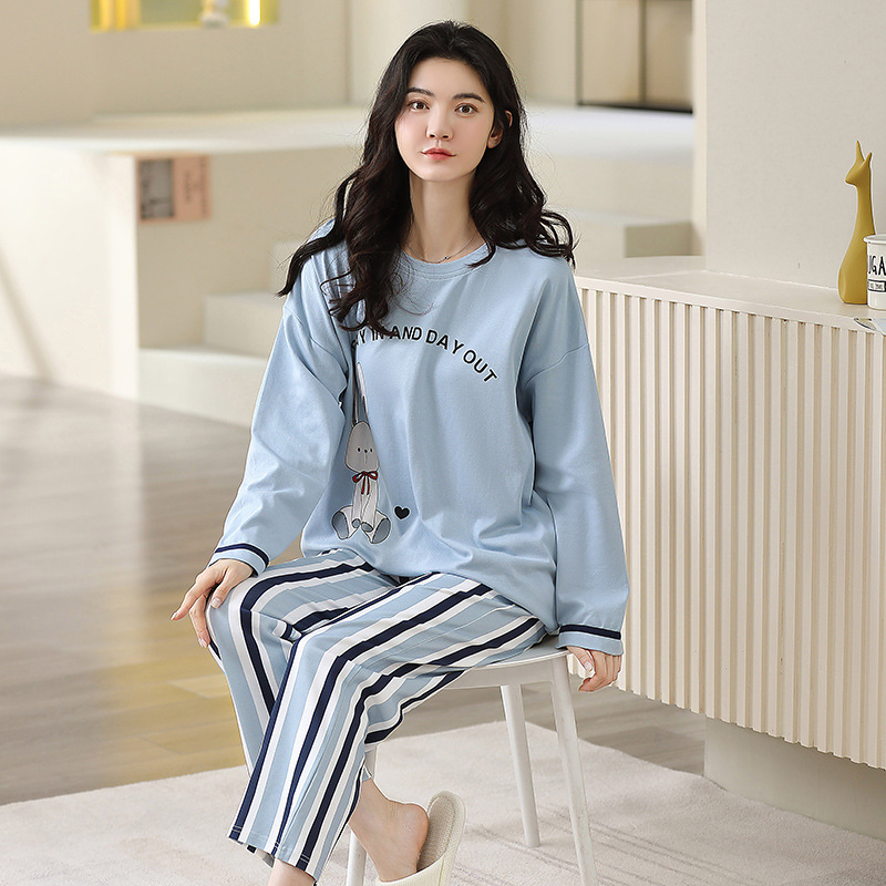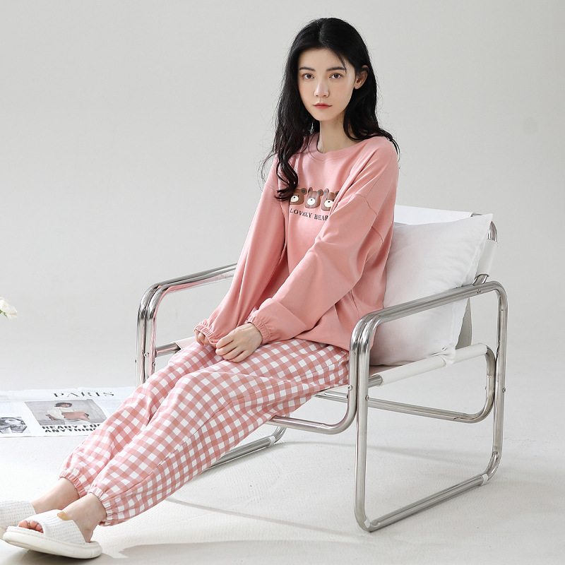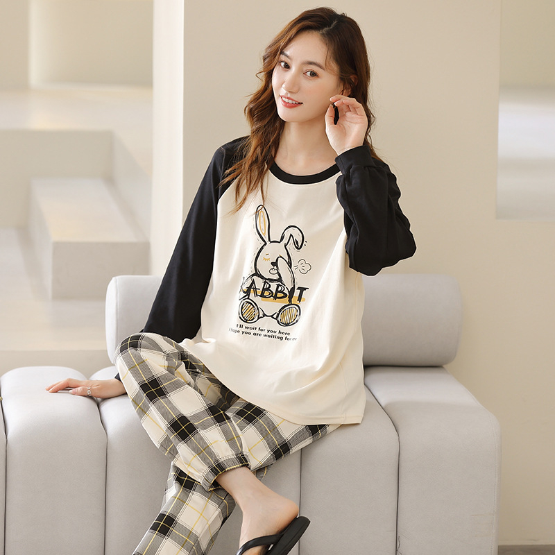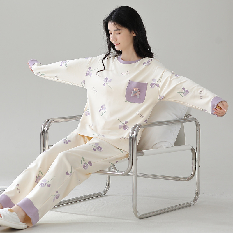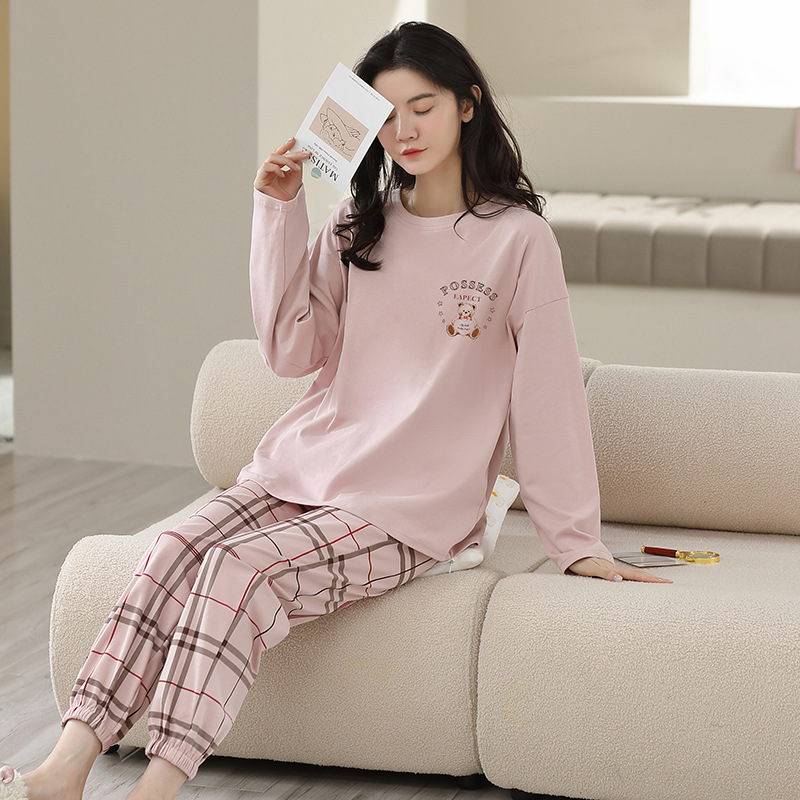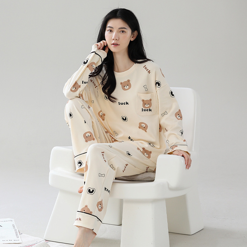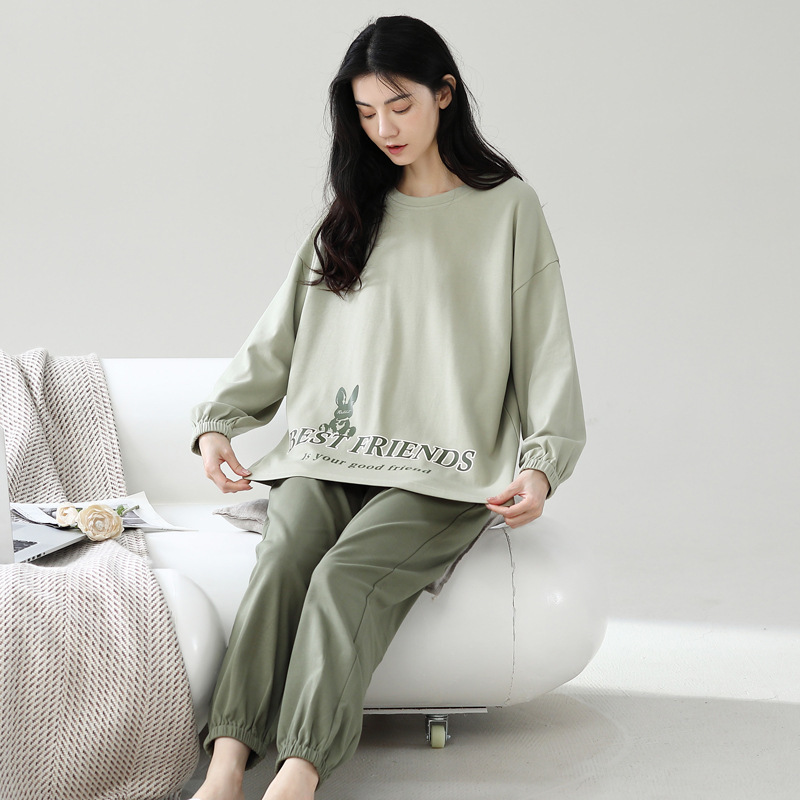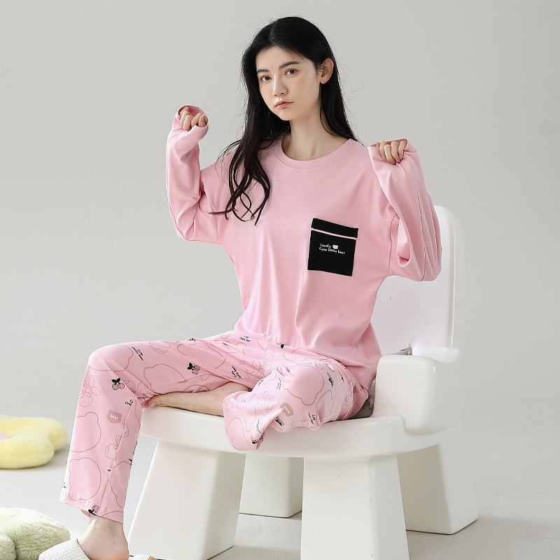 잠옷 여성의 봄과 가을 면화 긴팔 바지 둥근 목 귀여운 인쇄 외부 착용 캐주얼 여성 홈 의류 새로운 도착스토어 가기