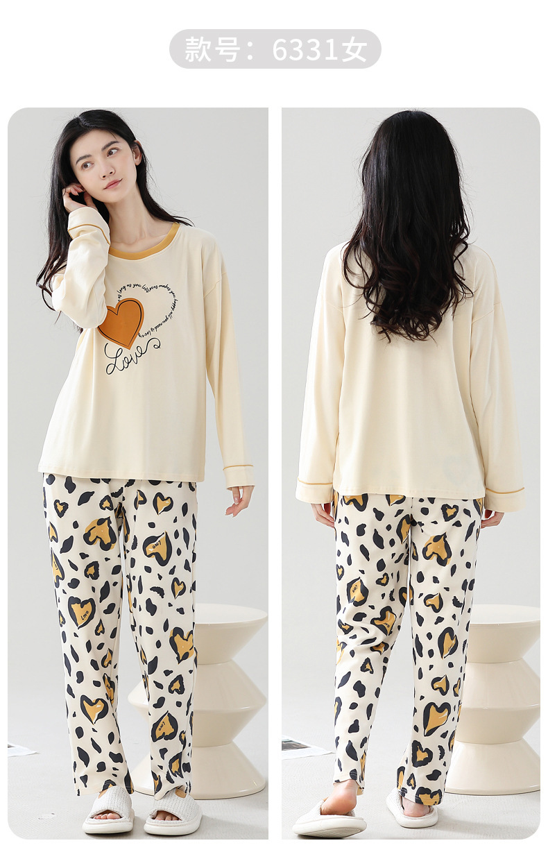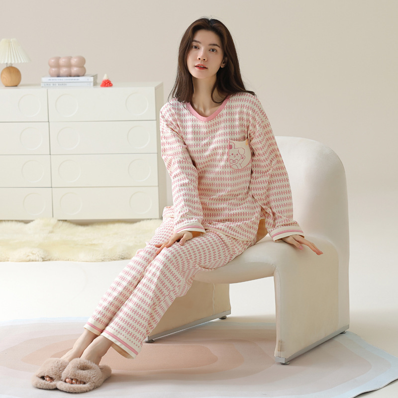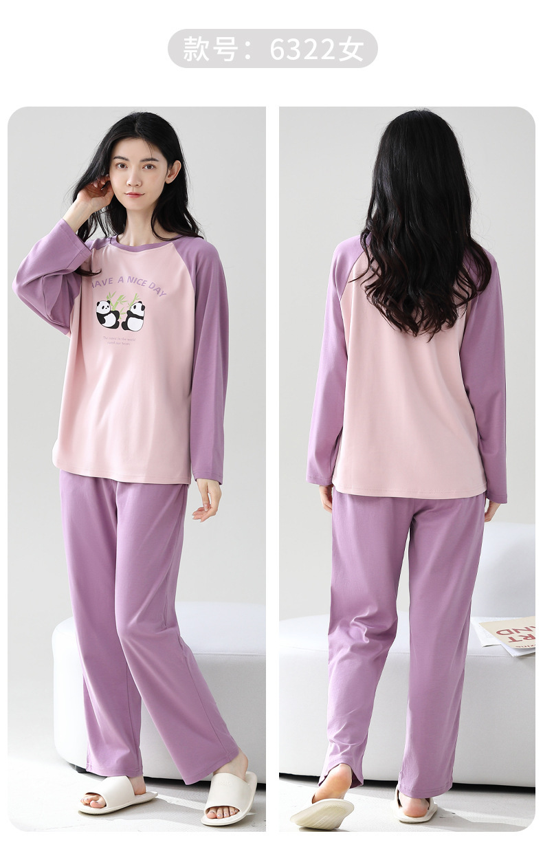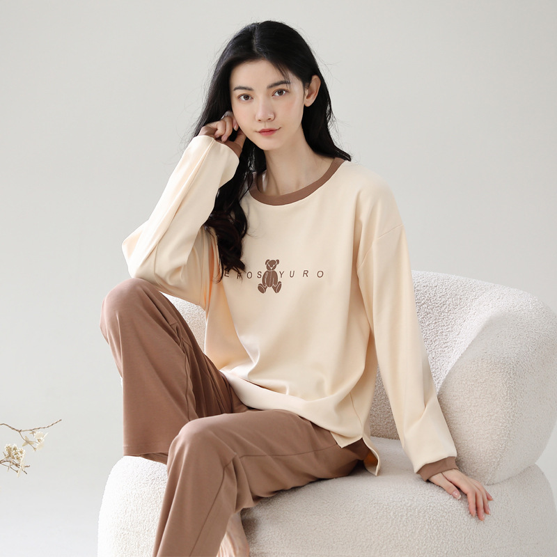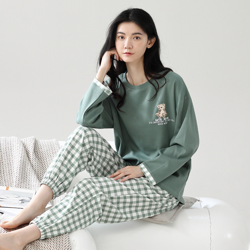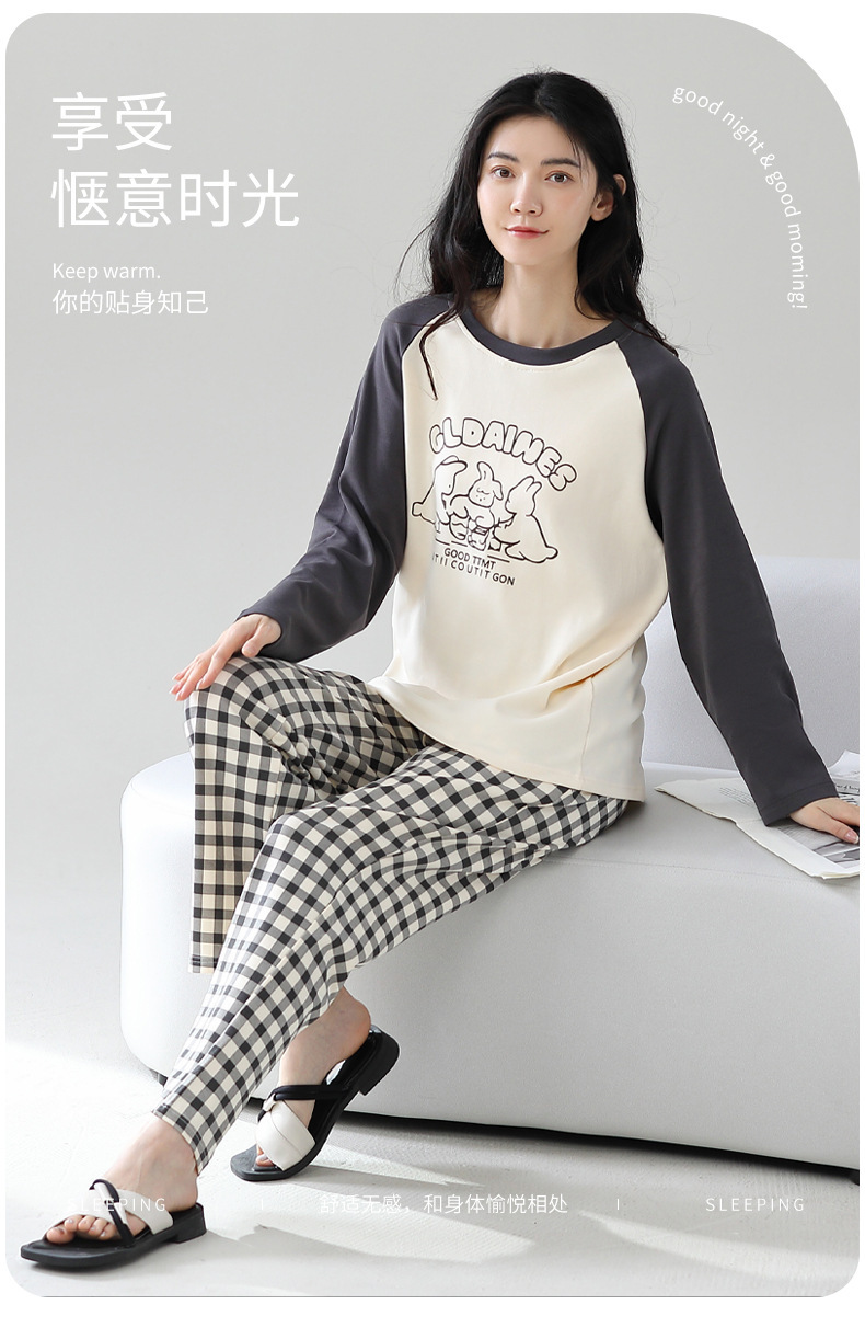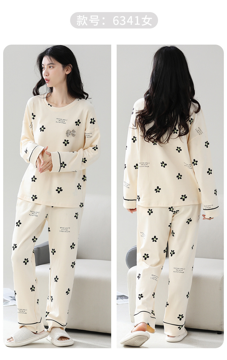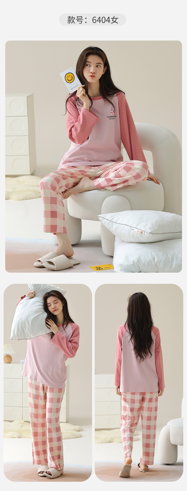 잠옷 여성의 봄과 가을 면화 긴팔 바지 둥근 목 귀여운 인쇄 외부 착용 캐주얼 여성 홈 의류 새로운 도착스토어 가기