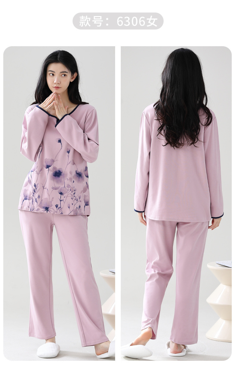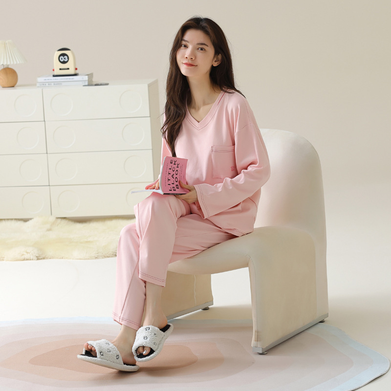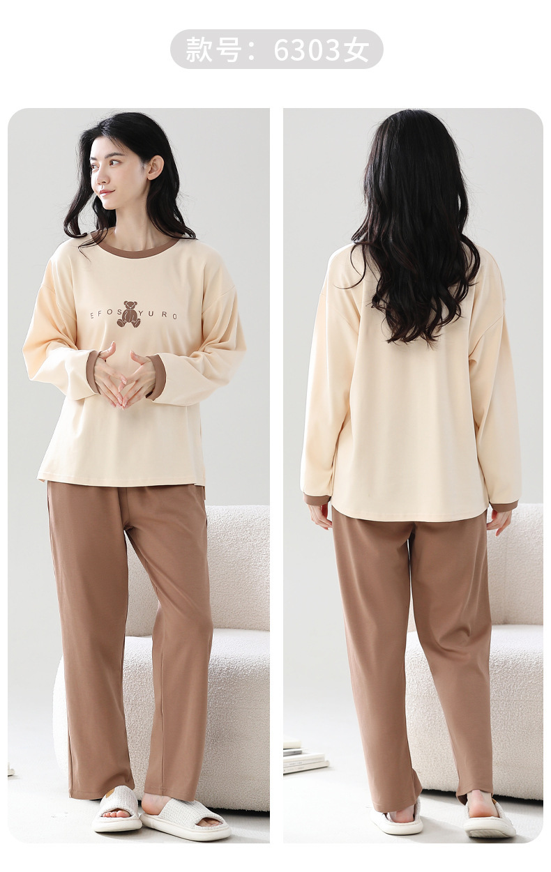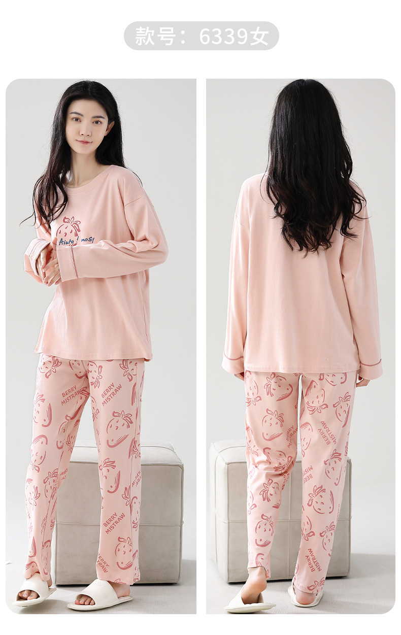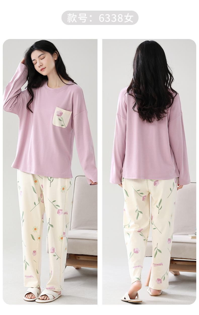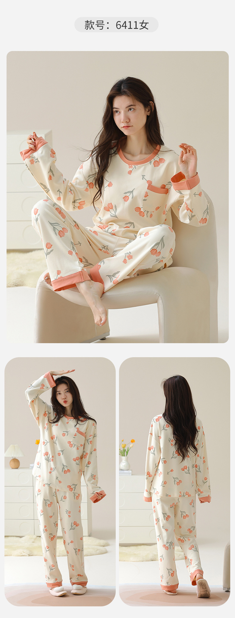 잠옷 여성의 봄과 가을 면화 긴팔 바지 둥근 목 귀여운 인쇄 외부 착용 캐주얼 여성 홈 의류 새로운 도착스토어 가기