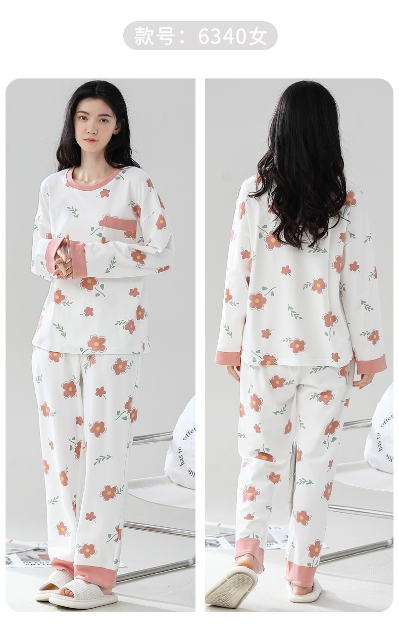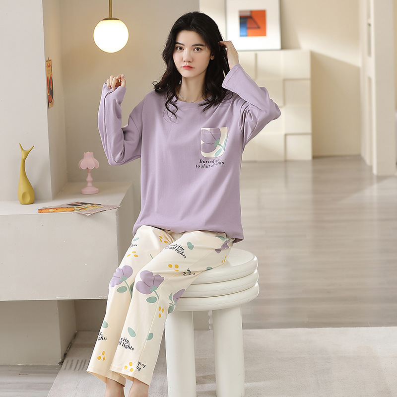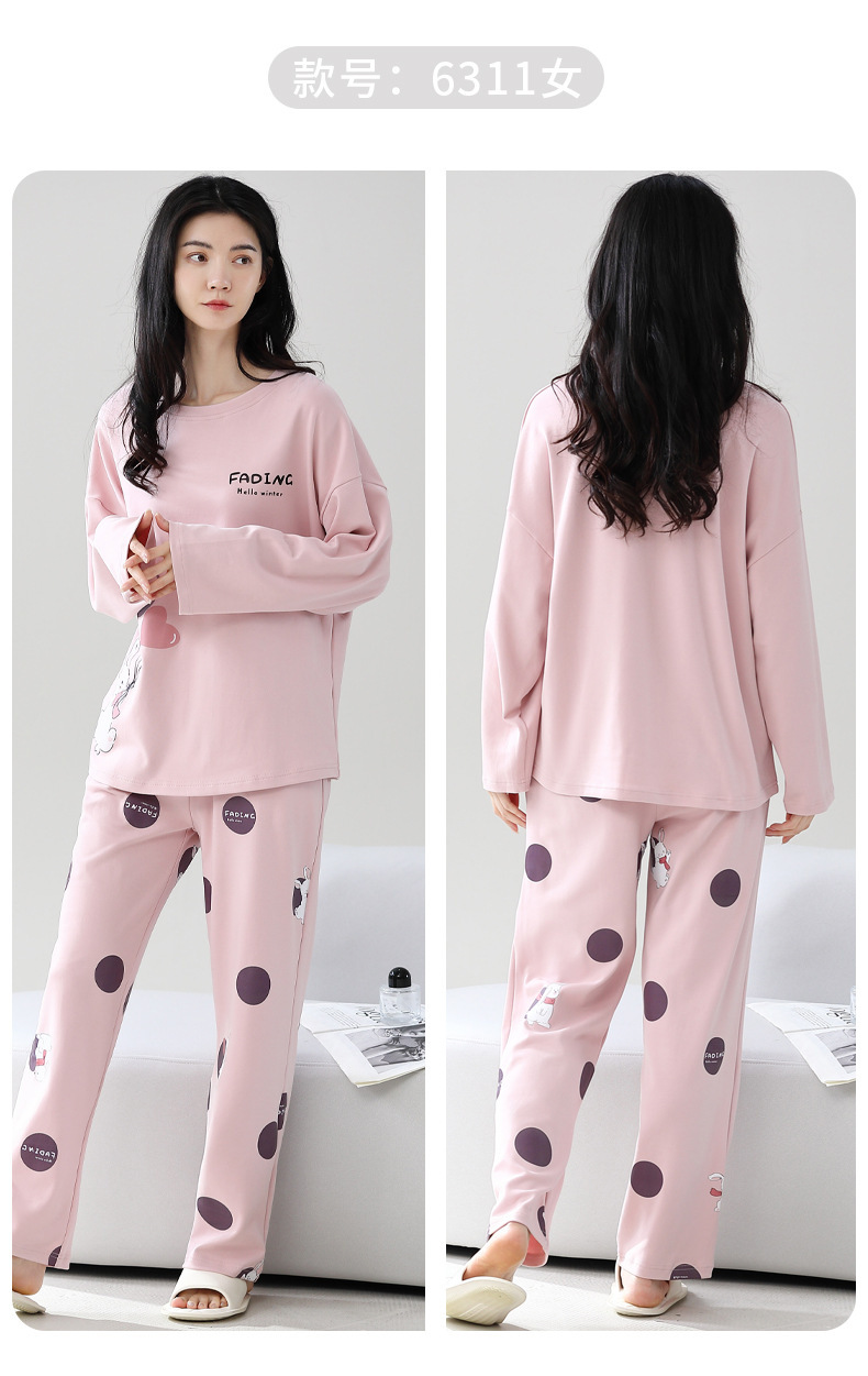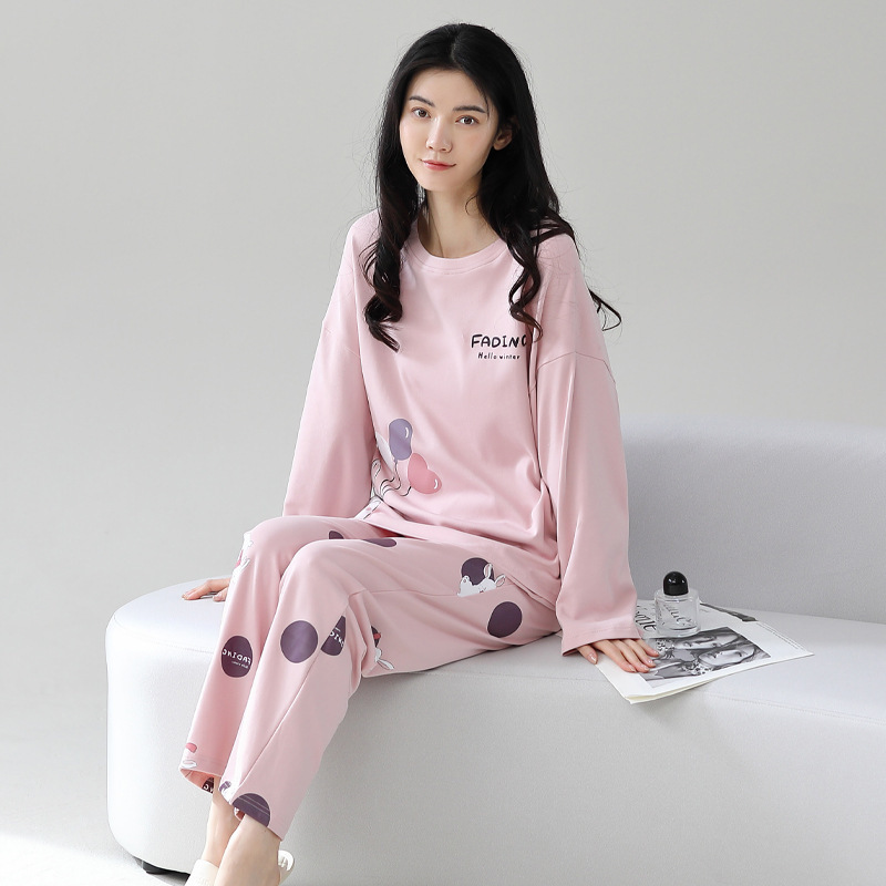 잠옷 여성의 봄과 가을 면화 긴팔 바지 둥근 목 귀여운 인쇄 외부 착용 캐주얼 여성 홈 의류 새로운 도착
