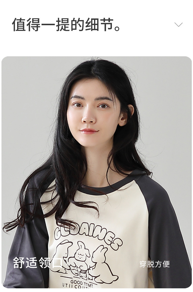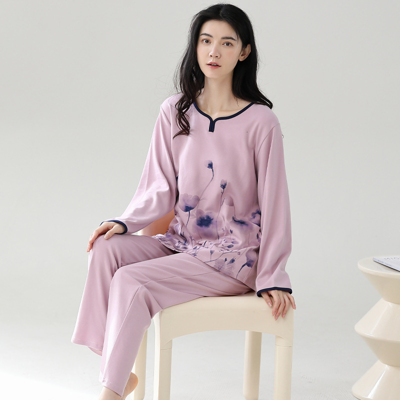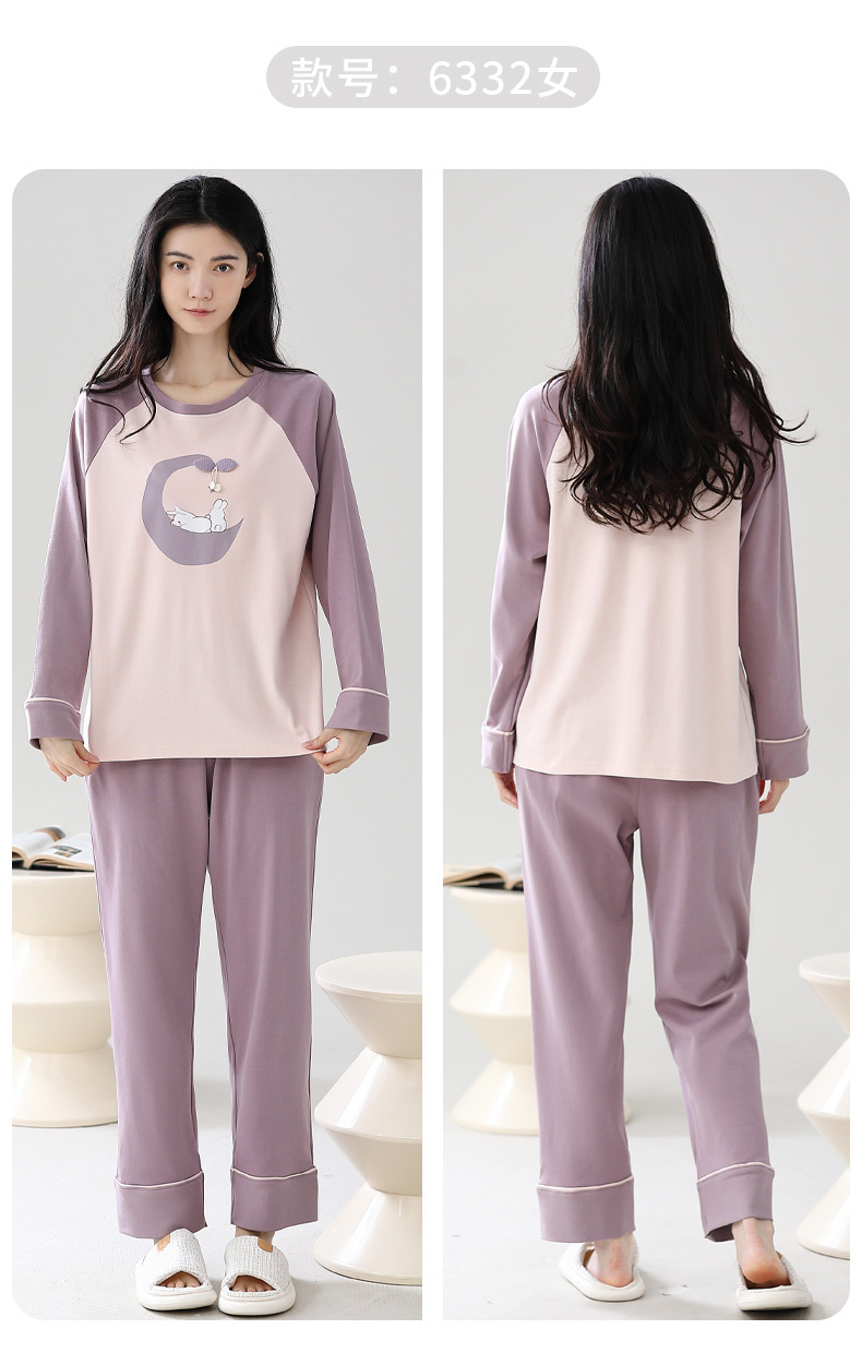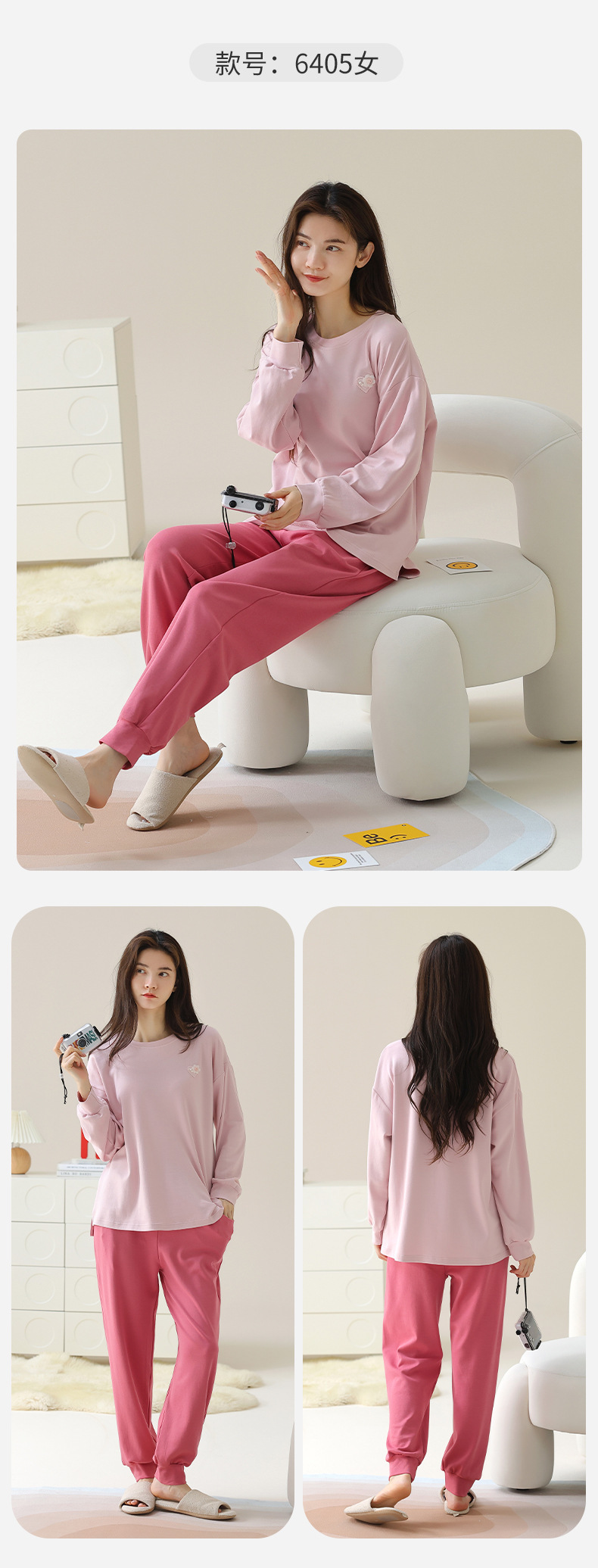 잠옷 여성의 봄과 가을 면화 긴팔 바지 둥근 목 귀여운 인쇄 외부 착용 캐주얼 여성 홈 의류 새로운 도착
