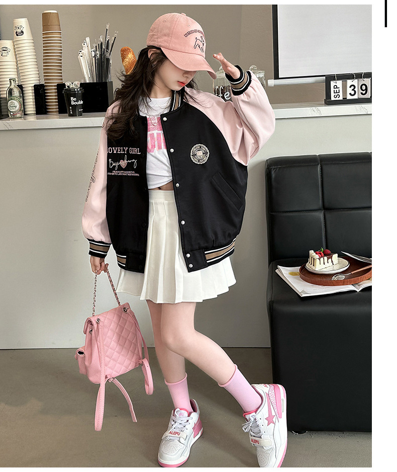 소녀 코트 가을 2024 새로운 스타일 중대형 어린이 세련된 재킷 유행 탑 어린이 스탠드 칼라 올 매치 야구 세트스토어 가기