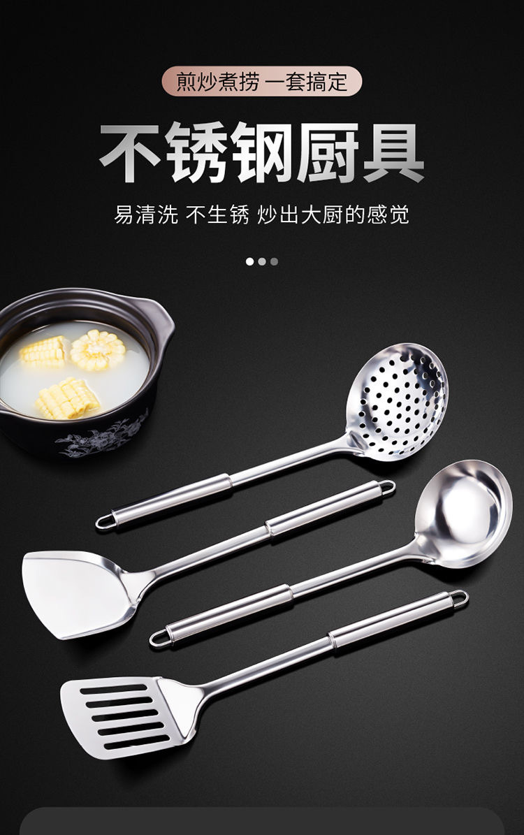 스테인레스 스틸 주걱 숟가락 세트 주방 긴 손잡이 주방 주방용품 비 뜨거운 튀김 삽 볶음 소쿠리 스푼 수프 스푼 스푼스토어 가기