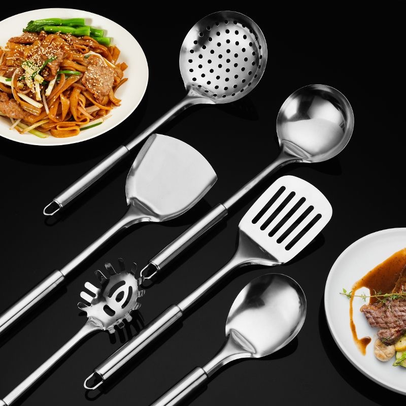 스테인레스 스틸 주걱 숟가락 세트 주방 긴 손잡이 주방 주방용품 비 뜨거운 튀김 삽 볶음 소쿠리 스푼 수프 스푼 스푼