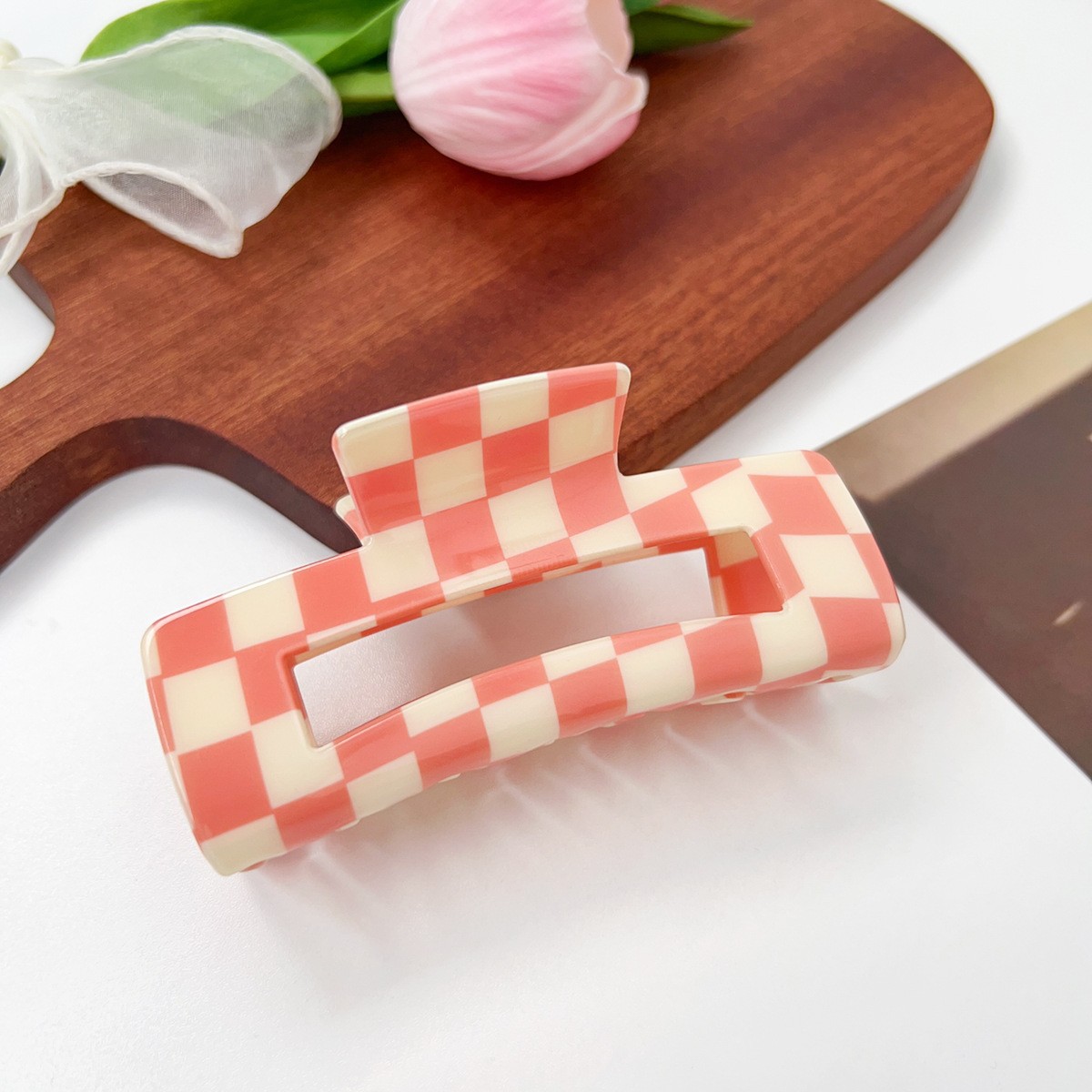 Wen Yue 쥬얼리 한국 아세트산 그랩 클립 스몰 사이즈 캔디 컬러 체커보드 헤어핀 간단한 올 매치 헤어 액세서리 헤어 그랩