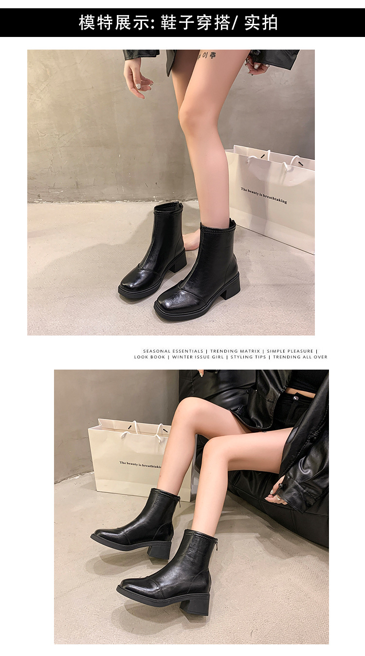 2025 가을 겨울 신상 중굽 두꺼운 굽 패션 숏부츠 여성 레트로 마틴 부츠 라운드 토 후면 지퍼 슬림 여성 부츠스토어 가기