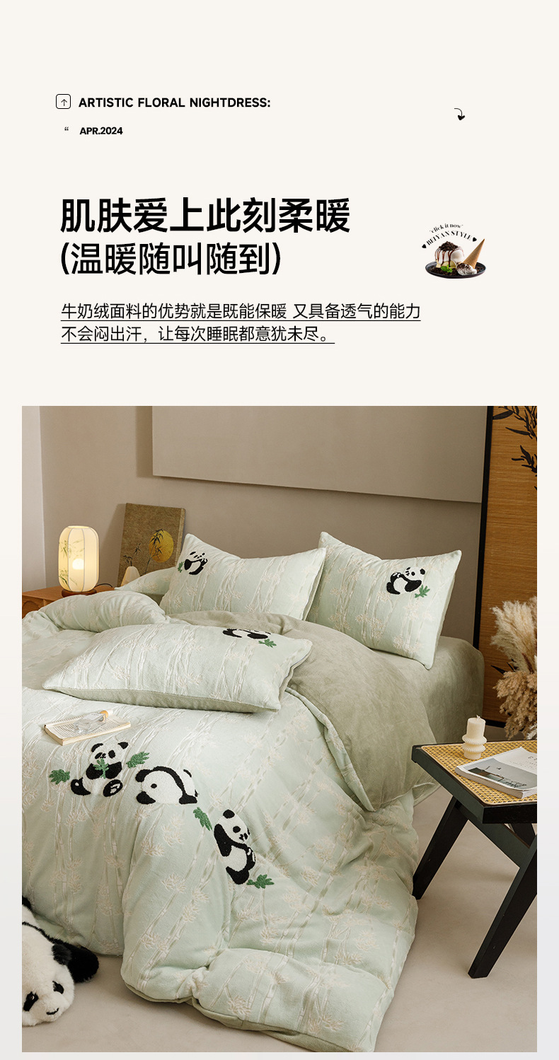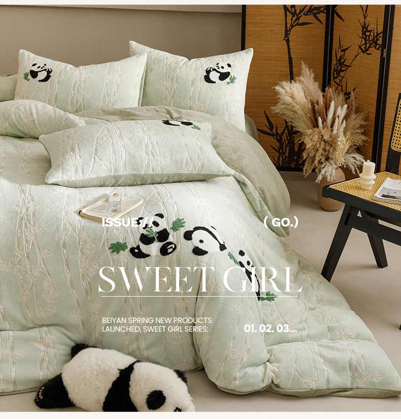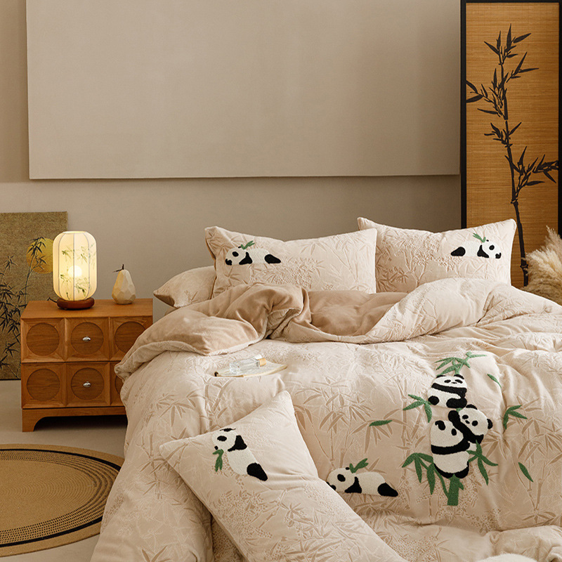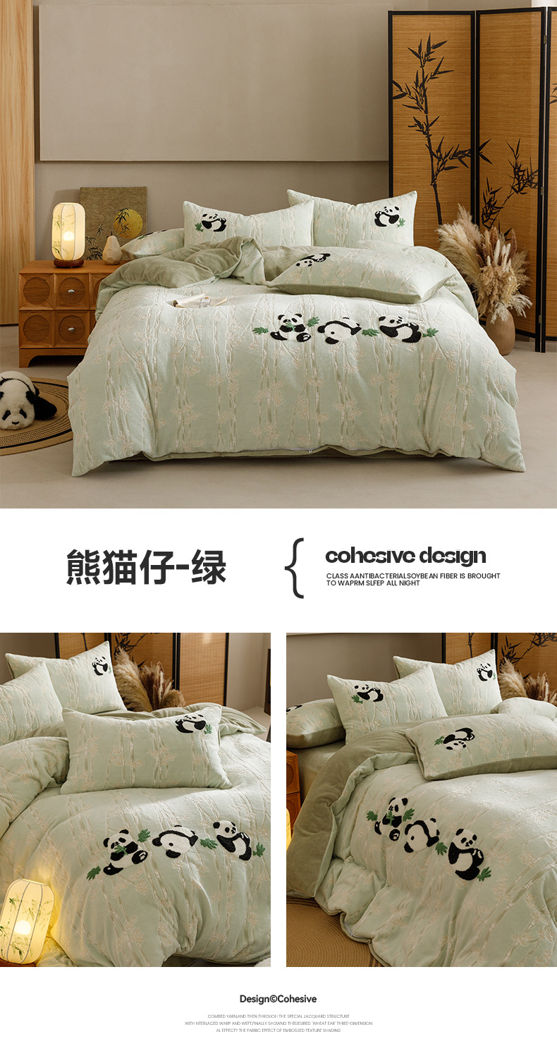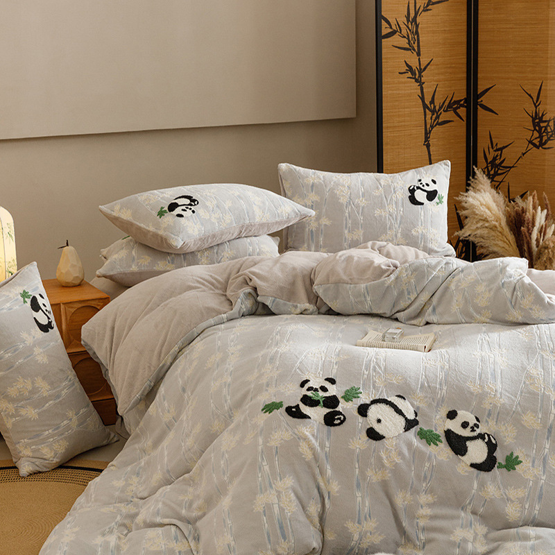 2024 새로운 하이 엔드 베이비 벨벳 침대 4 피스 세트 겨울 침대 시트 퀼트 커버 두꺼운 우유 벨벳 침대 3 피스 세트스토어 가기