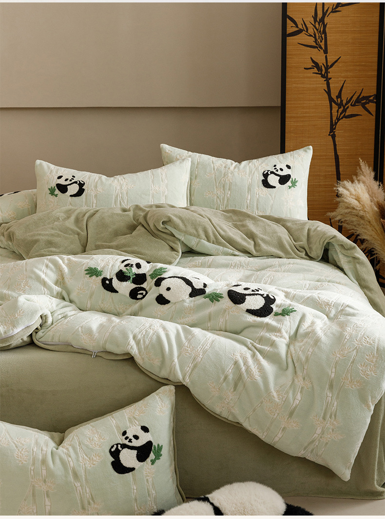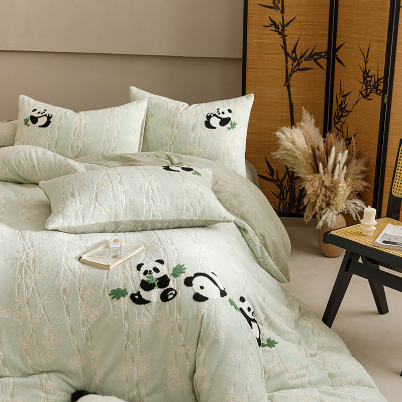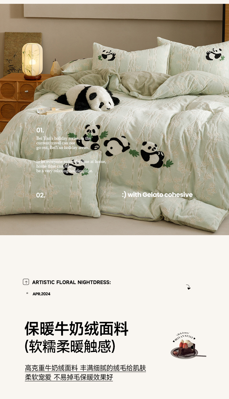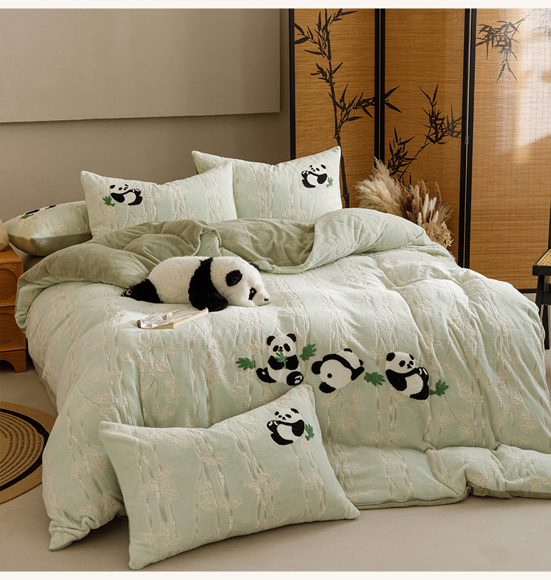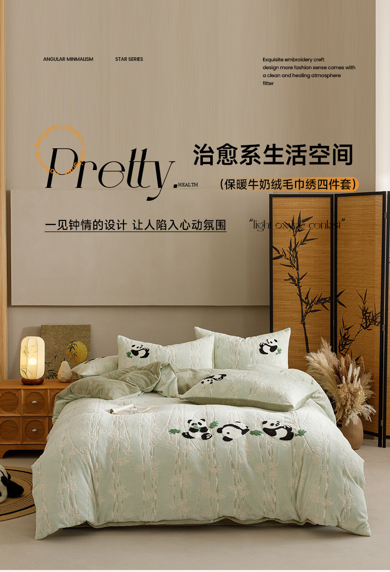 2024 새로운 하이 엔드 베이비 벨벳 침대 4 피스 세트 겨울 침대 시트 퀼트 커버 두꺼운 우유 벨벳 침대 3 피스 세트스토어 가기