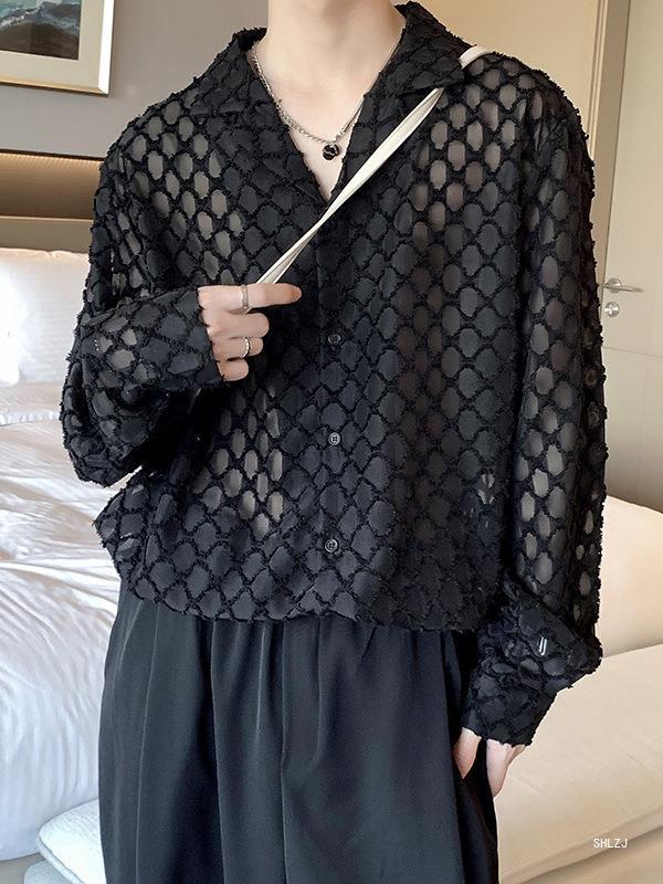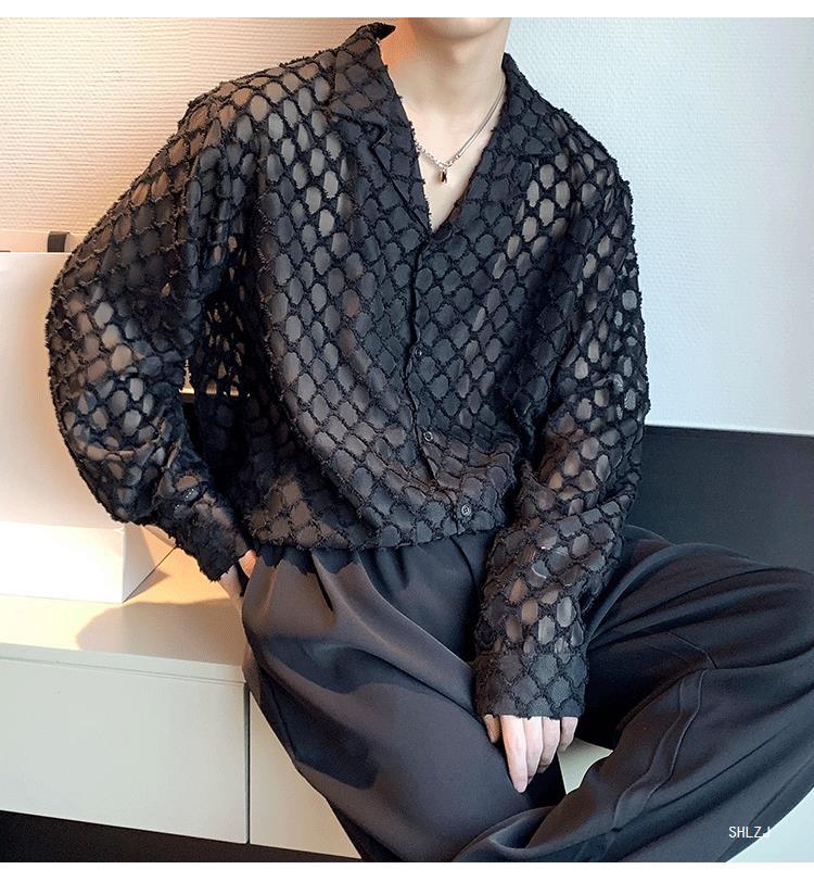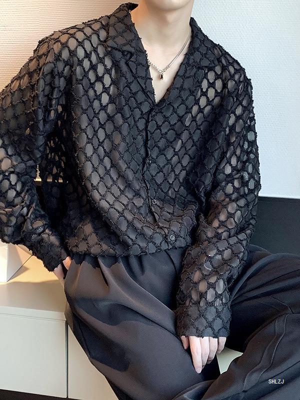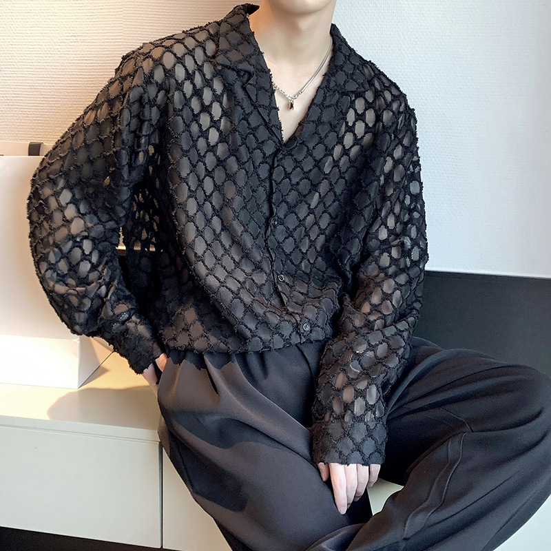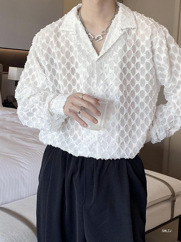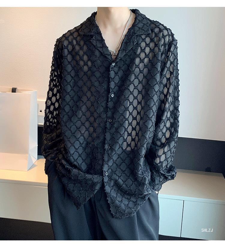 이른 가을 빛 성숙한 금욕 틈새 디자인 할로우 아웃 긴팔 셔츠 남자의 한국 스타일 셔츠스토어 가기