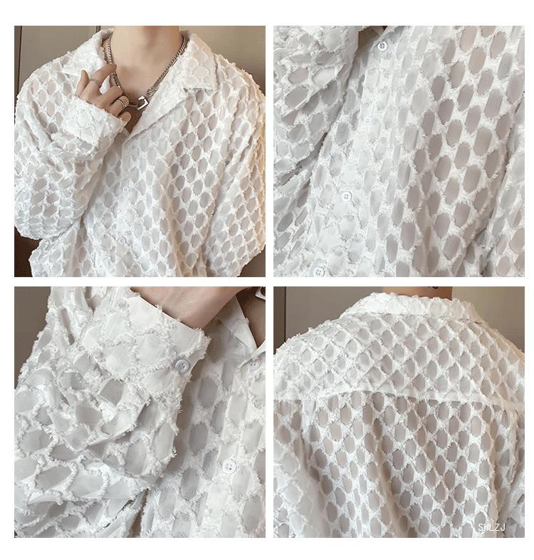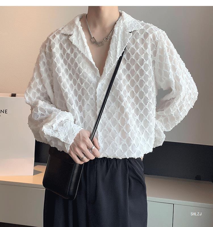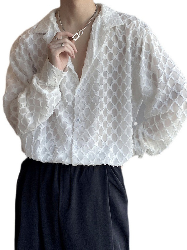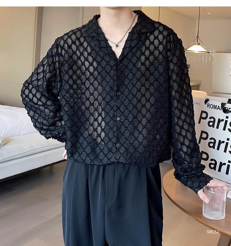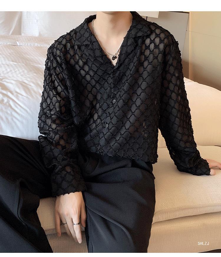 이른 가을 빛 성숙한 금욕 틈새 디자인 할로우 아웃 긴팔 셔츠 남자의 한국 스타일 셔츠스토어 가기