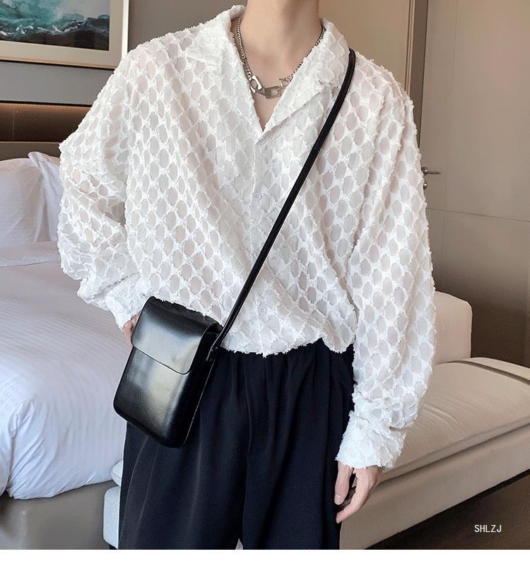 이른 가을 빛 성숙한 금욕 틈새 디자인 할로우 아웃 긴팔 셔츠 남자의 한국 스타일 셔츠
