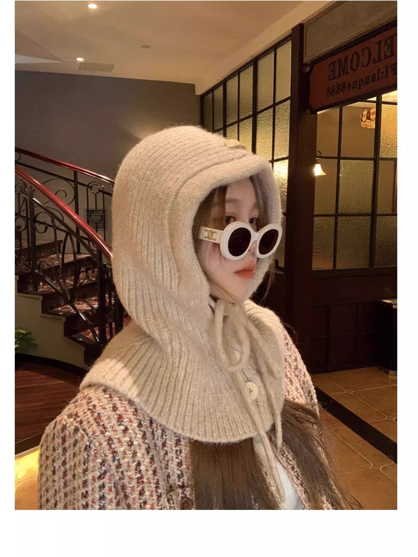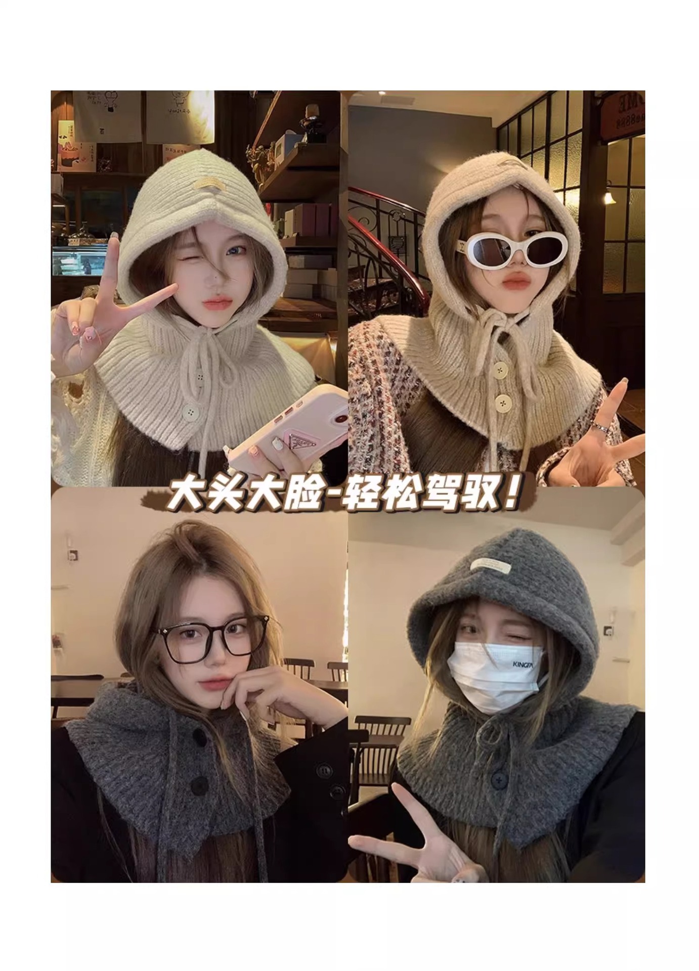 한국 스타일 발라 클라 바 모자 여성의 겨울 두꺼운 턱받이 원피스 모자 큰 머리 양모 니트 귀 보호 모자스토어 가기