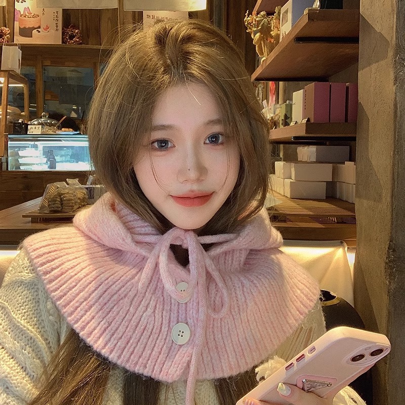 한국 스타일 발라 클라 바 모자 여성의 겨울 두꺼운 턱받이 원피스 모자 큰 머리 양모 니트 귀 보호 모자