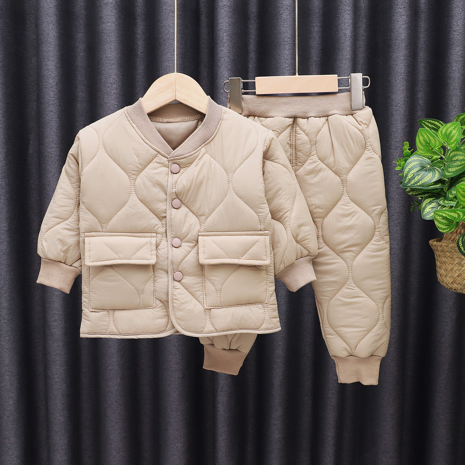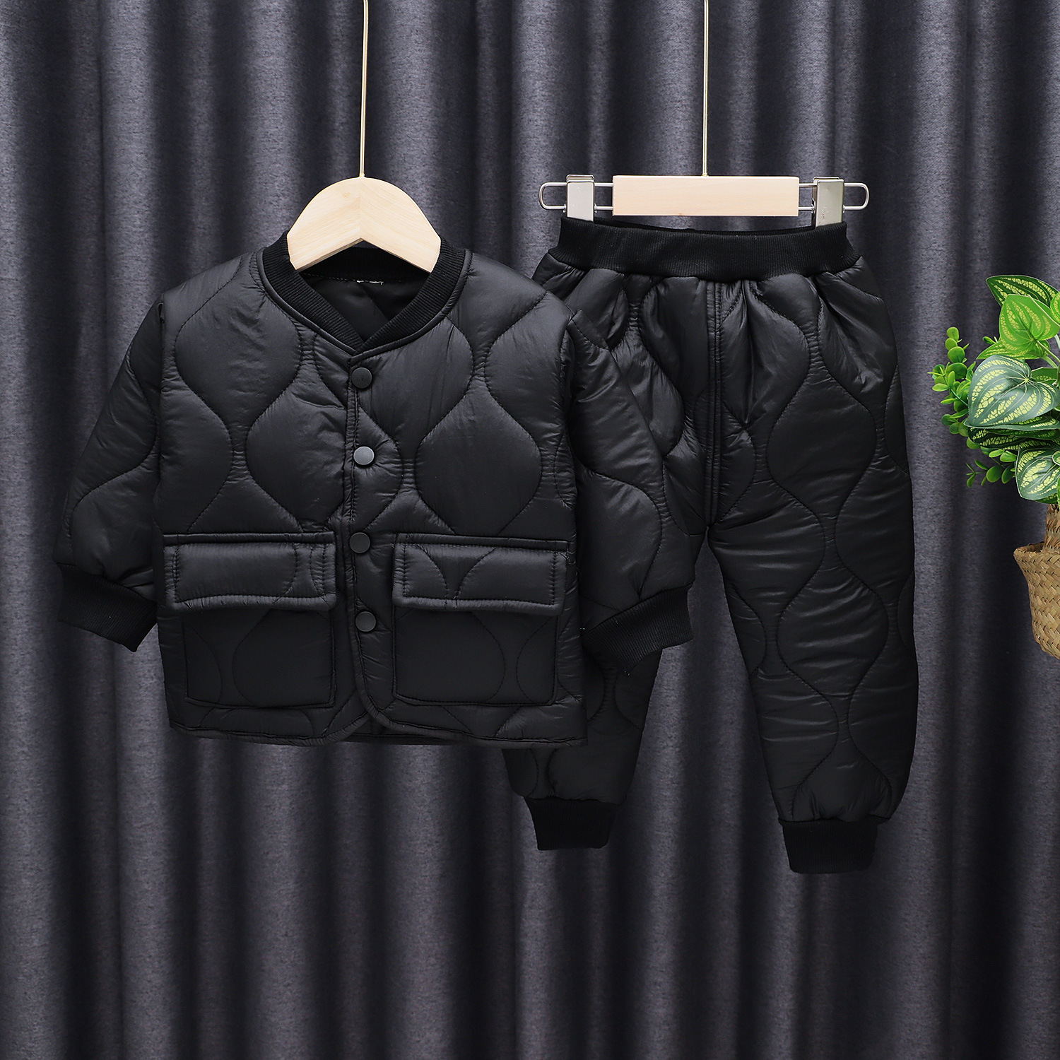 2024 년 신형 서양식 어린이 겨울 의류 세트 양면 패딩 재킷 아기 가을과 겨울 투피스 세트