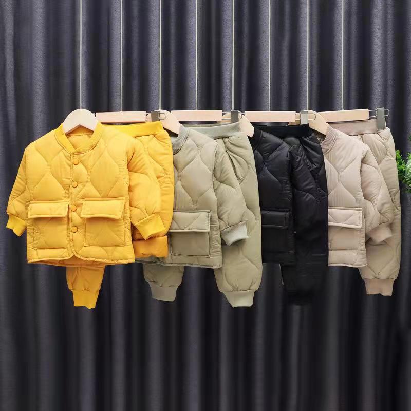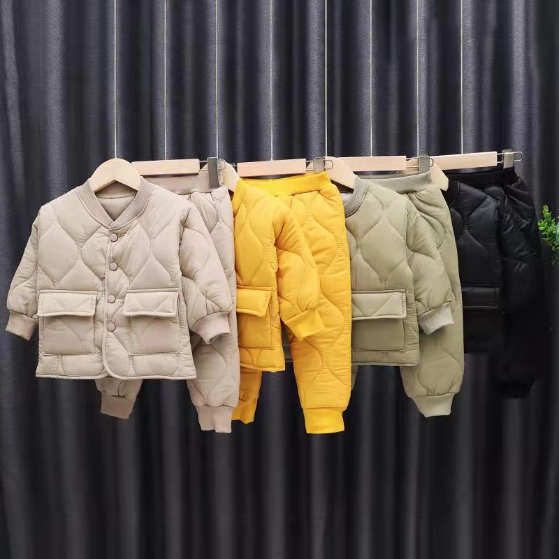 2024 년 신형 서양식 어린이 겨울 의류 세트 양면 패딩 재킷 아기 가을과 겨울 투피스 세트스토어 가기