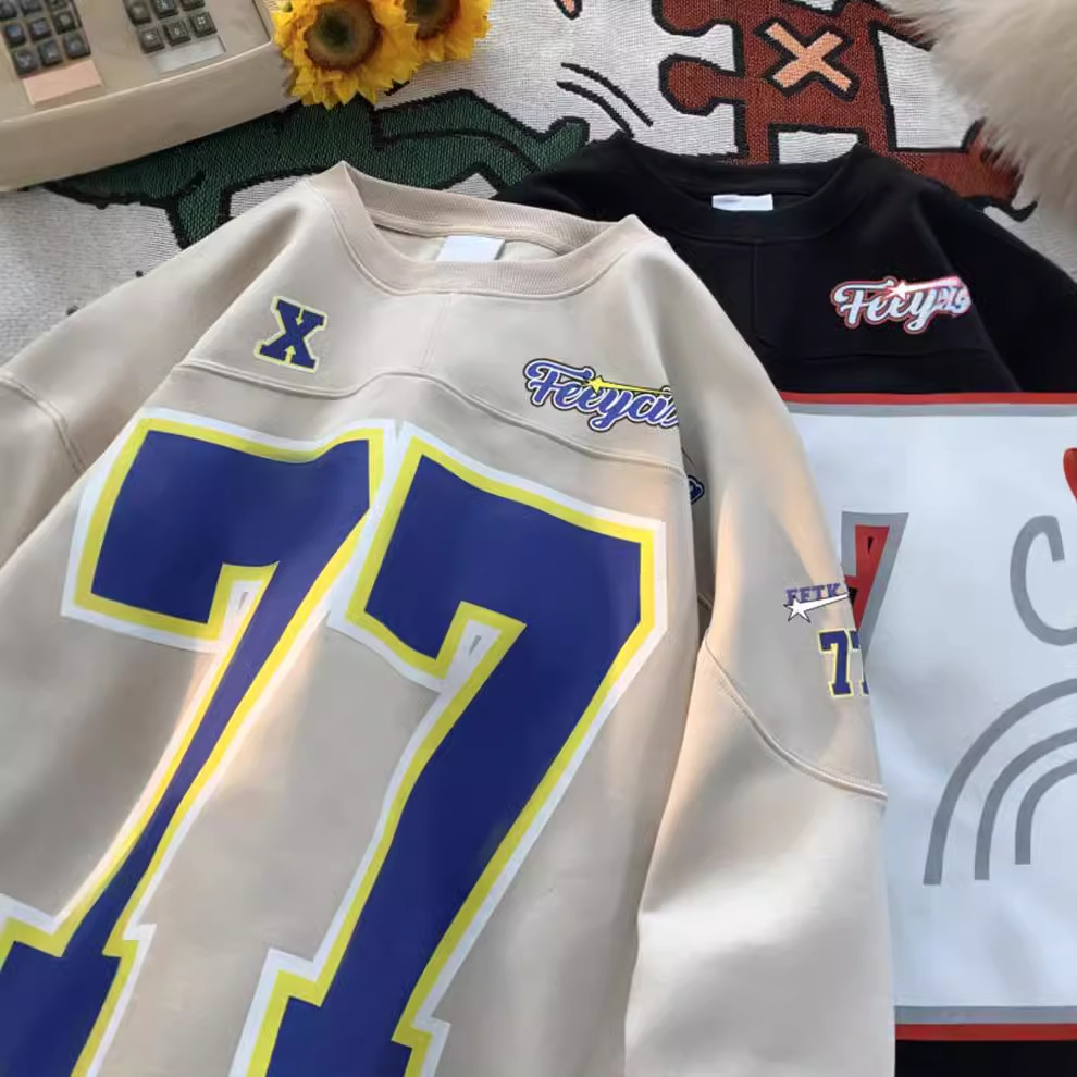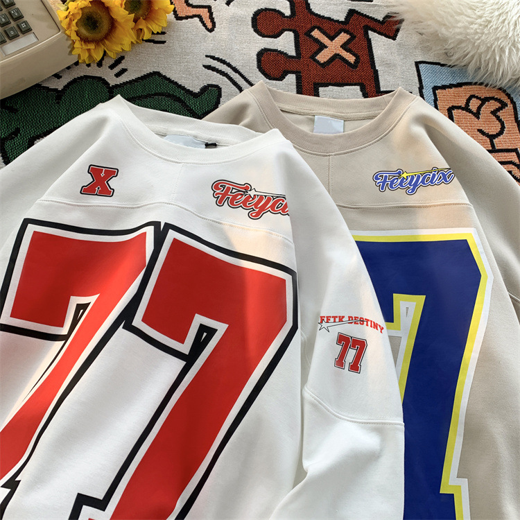 유럽과 미국의 힙합 스웨터 남자 봄과 가을 라운드 넥 모자없는 무거운 긴팔 티셔츠 트렌디 브랜드 미국 빈티지 아이스 하키 의류스토어 가기