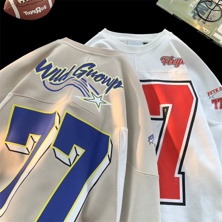 유럽과 미국의 힙합 스웨터 남자 봄과 가을 라운드 넥 모자없는 무거운 긴팔 티셔츠 트렌디 브랜드 미국 빈티지 아이스 하키 의류