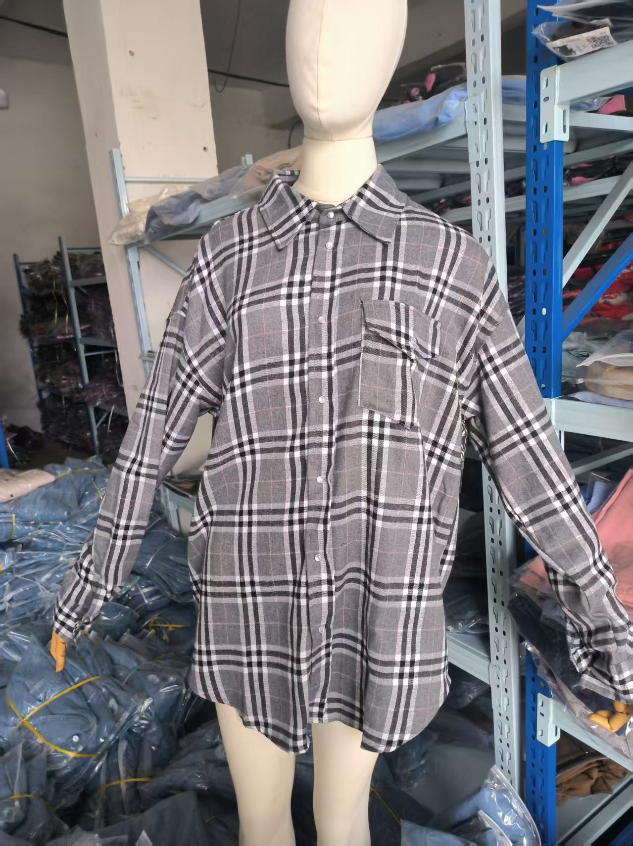 아마존 국경 복고풍 스타일 올 매치 옷깃 느슨한 셔츠 2024 봄과 가을 격자 무늬 긴 소매 포켓 여성용 셔츠스토어 가기