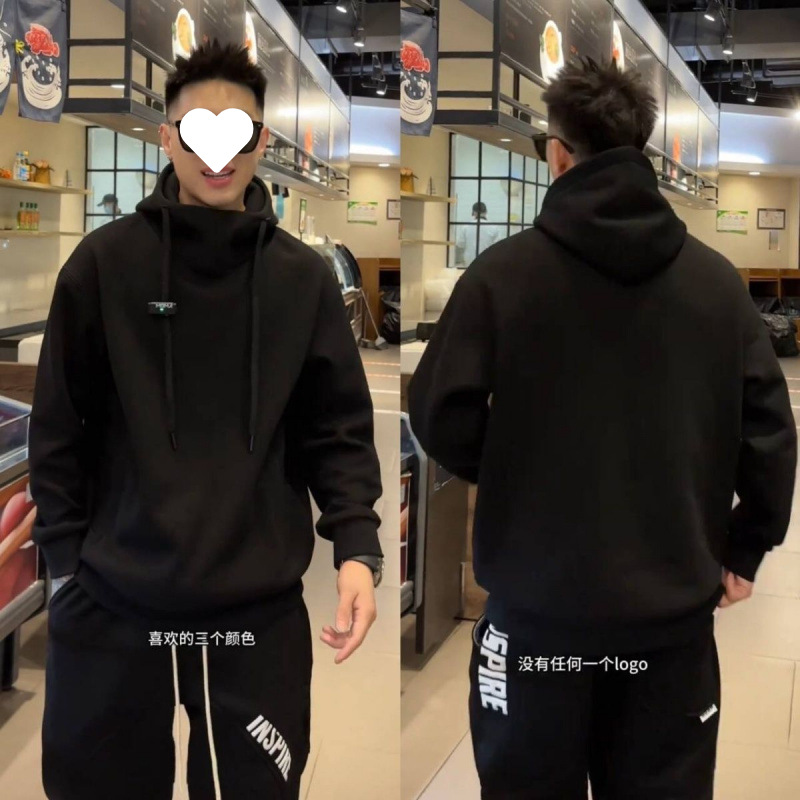 春季新款重磅高领连帽卫衣男潮流帅气时尚纯色宽松舒适内搭上衣스토어 가기