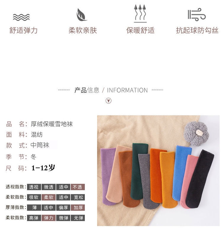 어린이 양말 따뜻한 눈 양말 가을과 겨울 소년 소녀 바닥 양말 수직 긴 튜브 기모 두꺼운 아기 양말